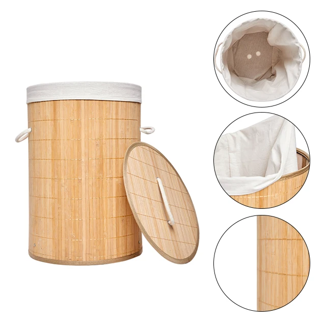 Supermarket choice and cheap dirty cloth storage basket round folding bamboo laundry basket