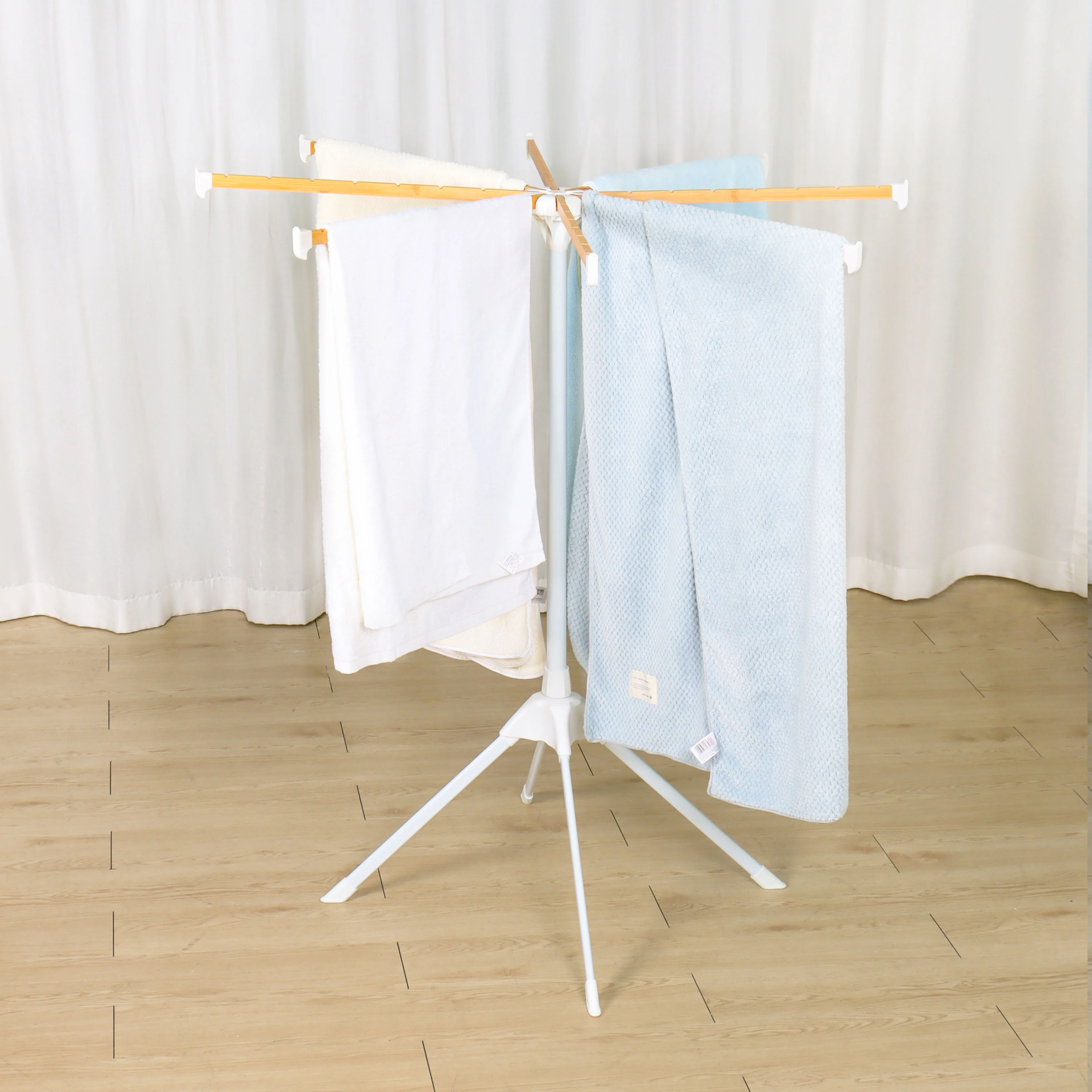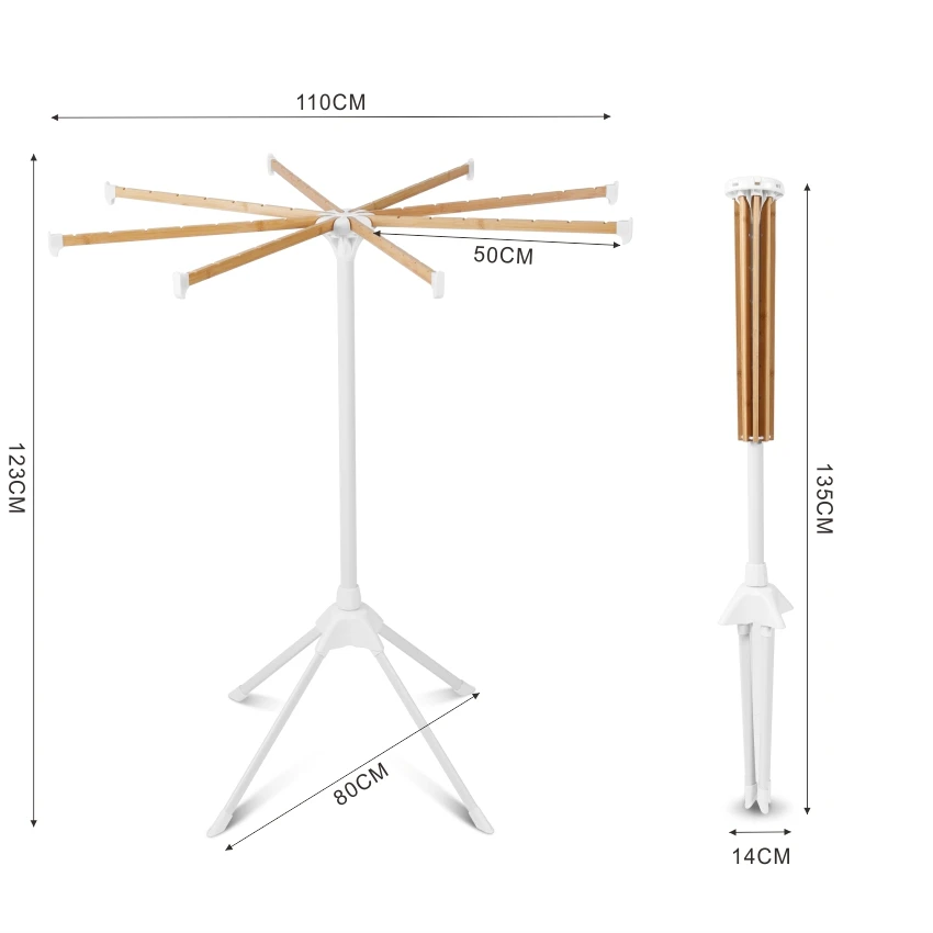 4 legs 8 rots 56pcs Hanging Hole Folding Cloth Drying Rods Floor Standing Clothes Rack Tripod Wooden Laundry Hanger