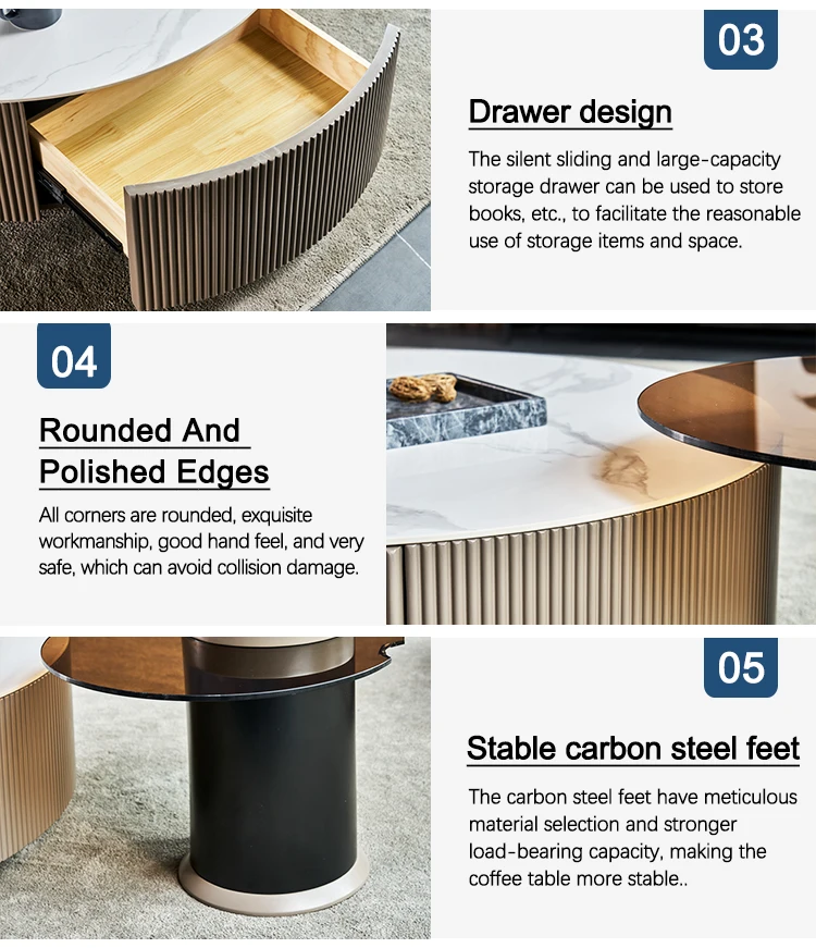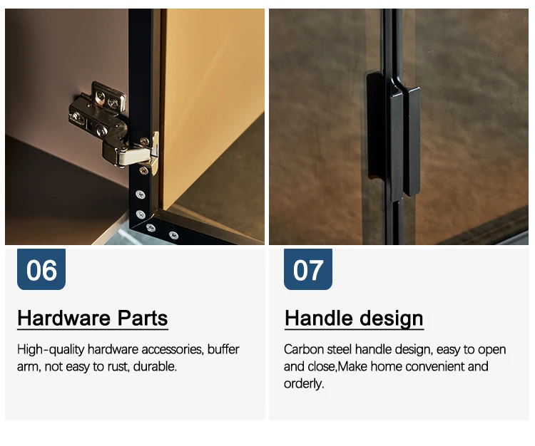 Material | Painted cabinet + fiberboard veneer + bright rock board + tempered glass + carbon steel tripod |