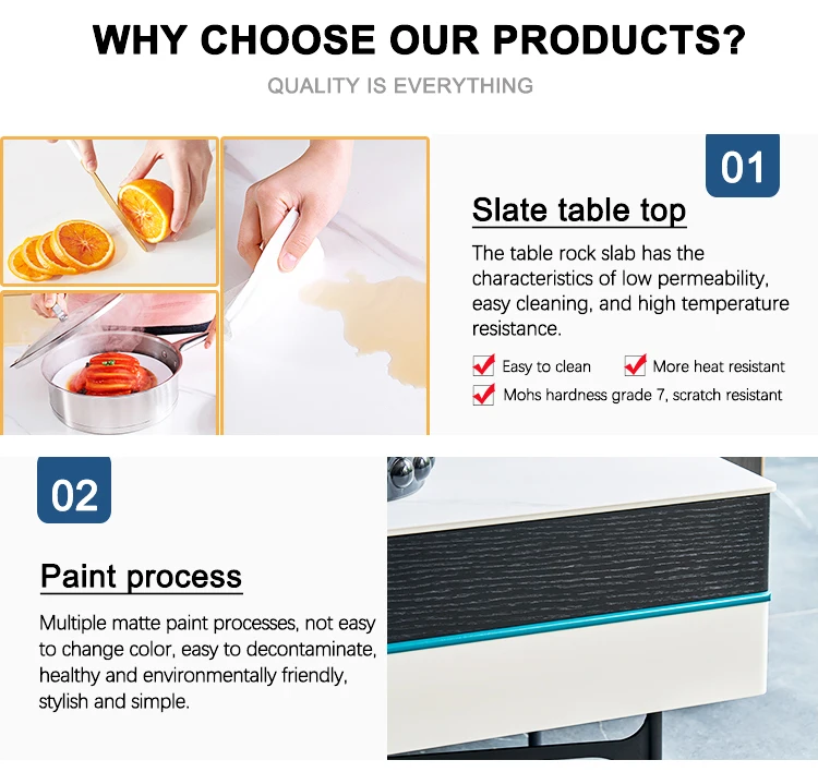 Material | Carbon steel + baking varnish + matte snow mountain stone slab, can be exchanged for white marble, the same price |