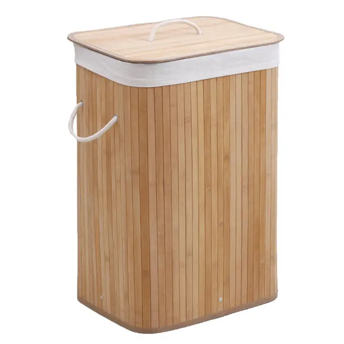 Wholesale Custom Eco-friendly Natural Bamboo Woven Slim Laundry Basket Cheap Folding Storage Basket Detachable With Lid