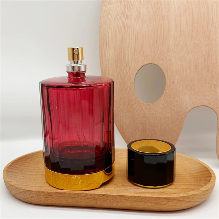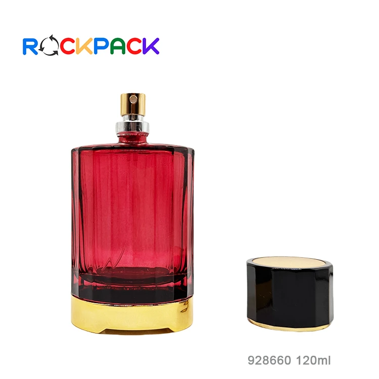 120ML Round flat shoulder red color perfume bottles customized packaging