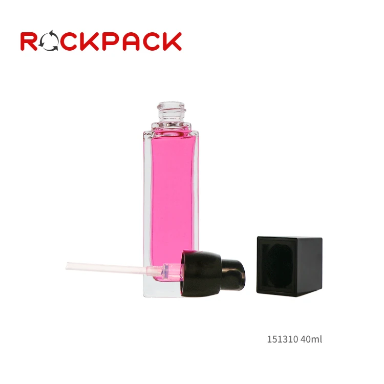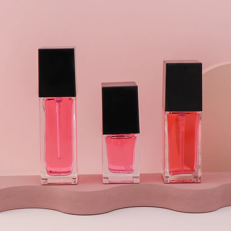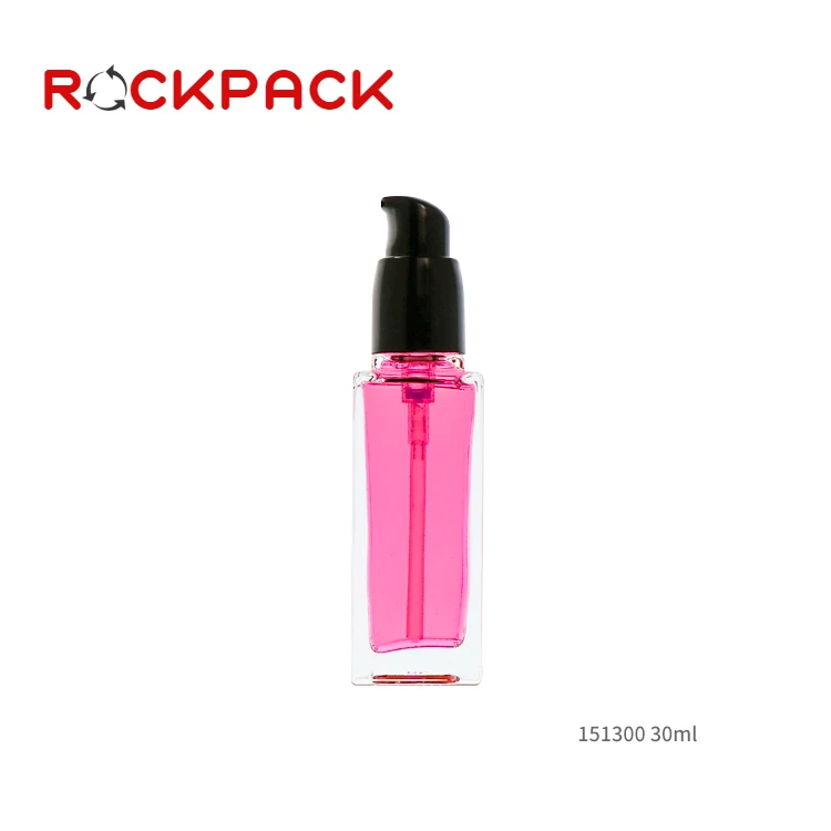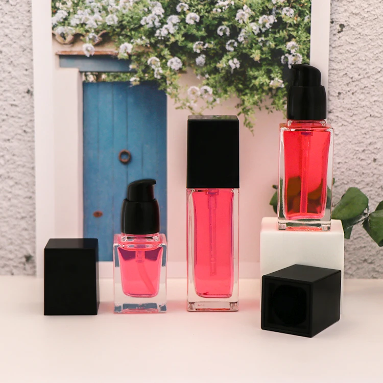 Empty 20ml 30ml 40ml Square Shaped Foundation Liquid Glass Pump Bottle