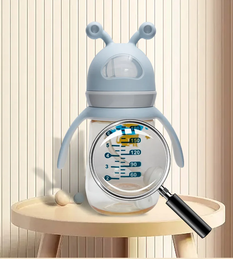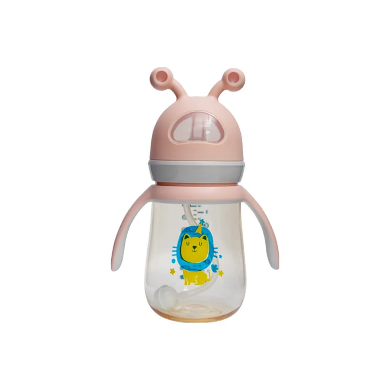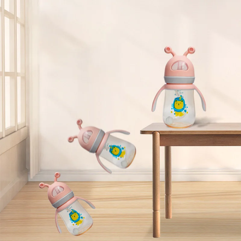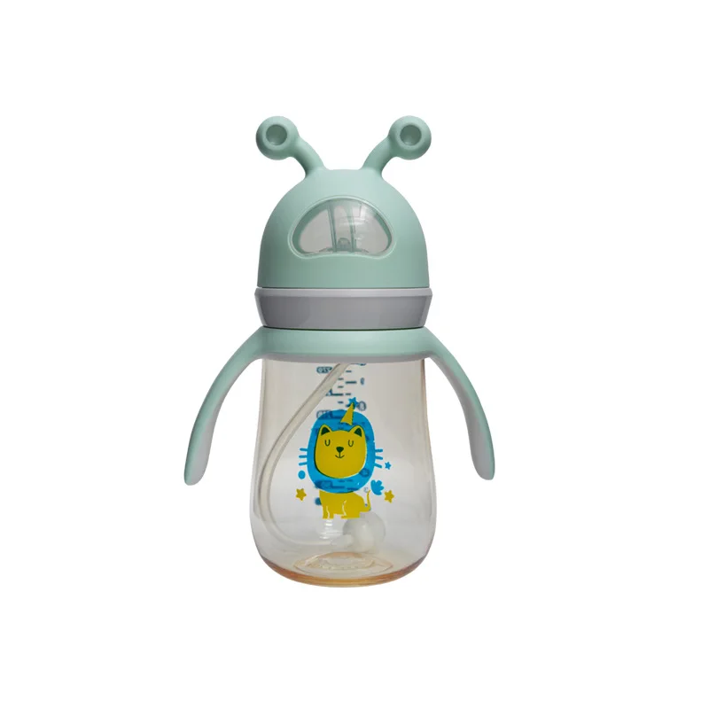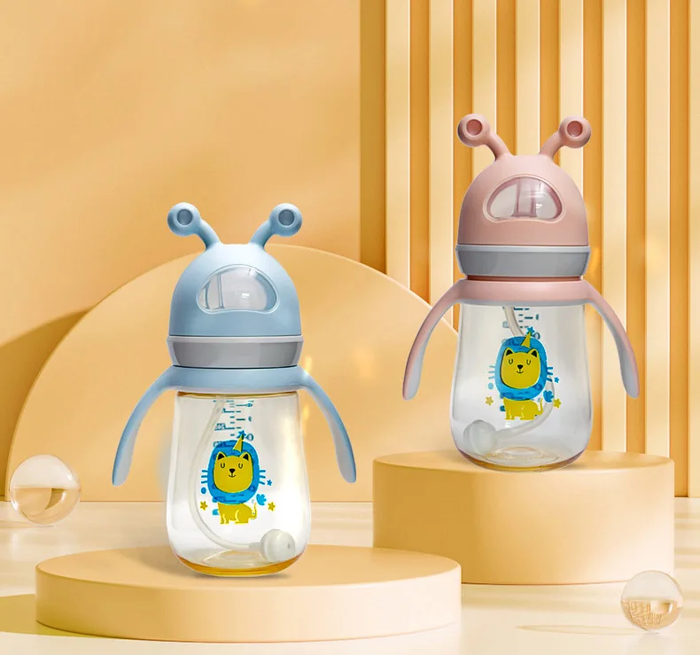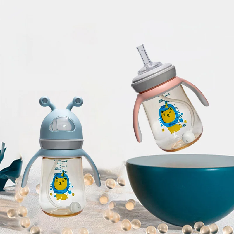 Newborn baby ppus baby bottle with straw anti-fall and anti-leakage bottle big baby drinking straw cup