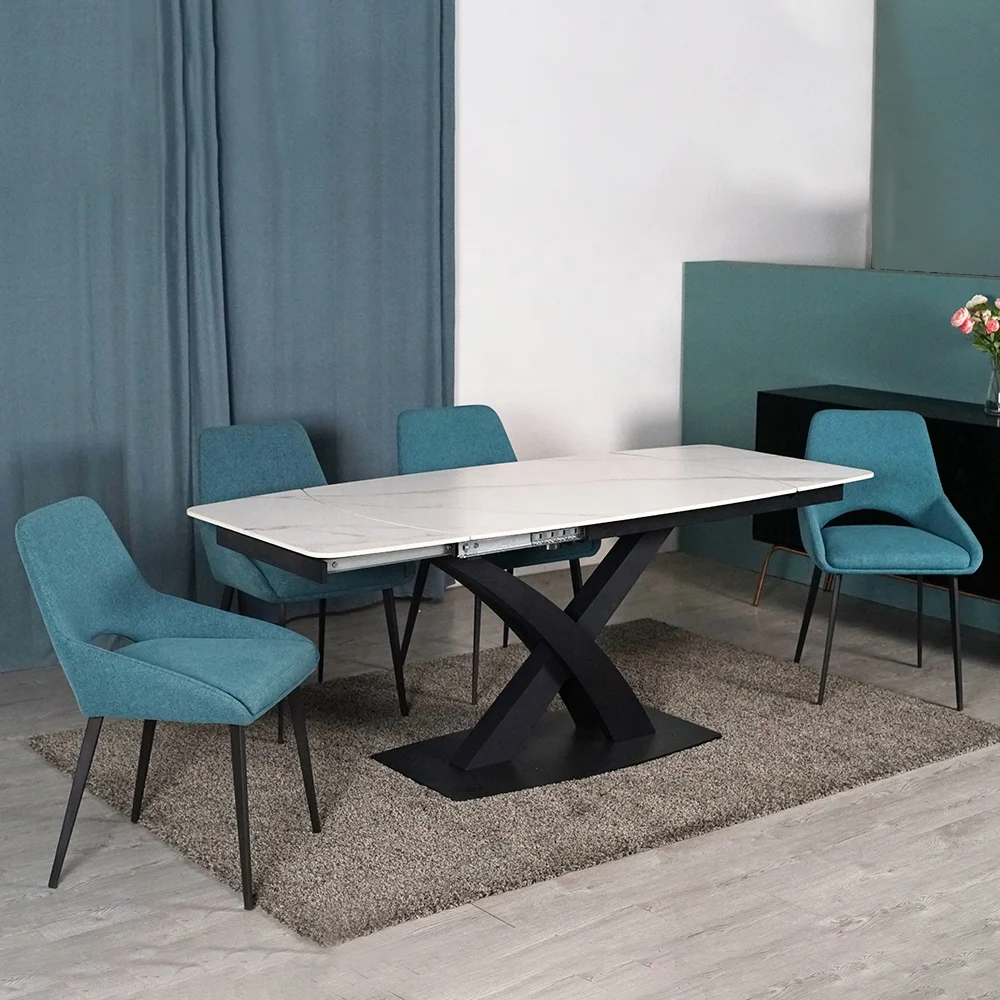 Manufacturer Batch Sales Stretchable Modern White With 6 Chairs Rectangle Extendable Dining Table Set