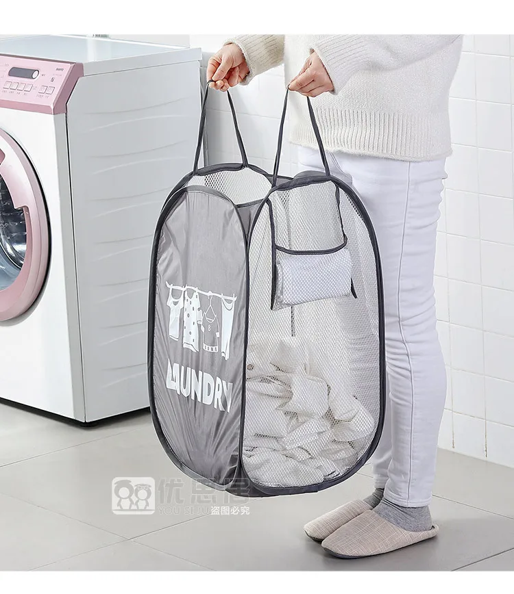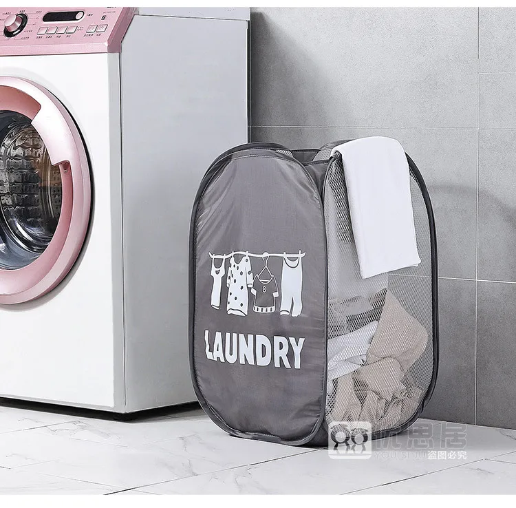 Amazon Hot Sale Folding Pop-up Clothes Hampers with Portable Handle Collapsible Mesh Popup Laundry Hamper