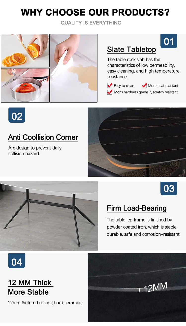 Top | 12mm sintered stone table top ( hard Ceramic) |