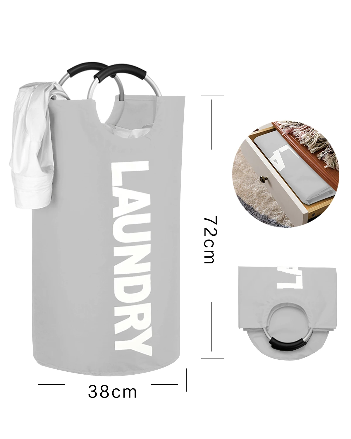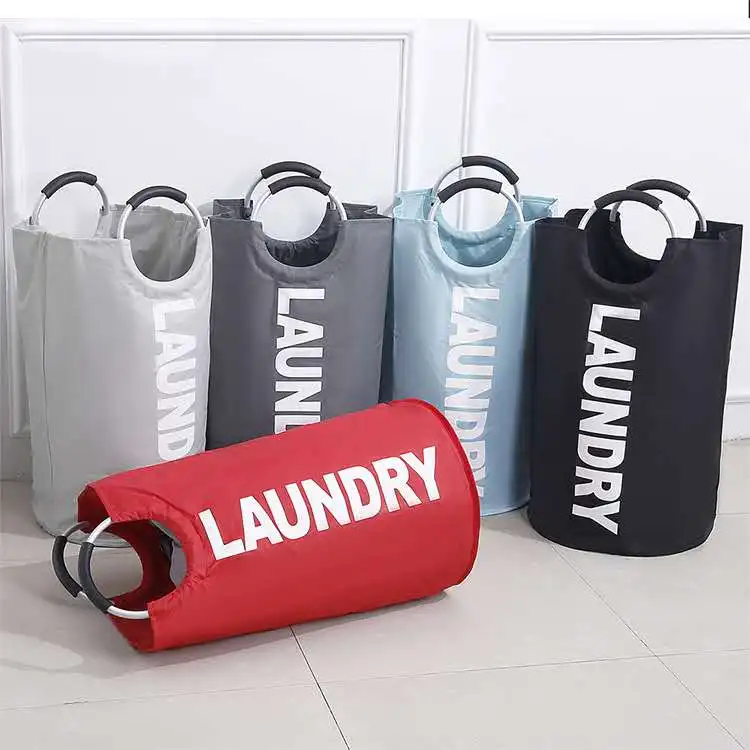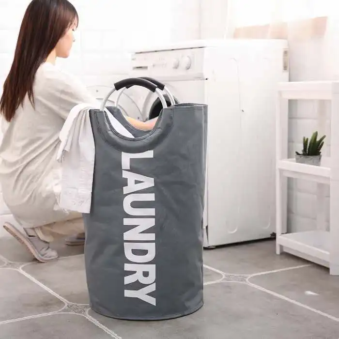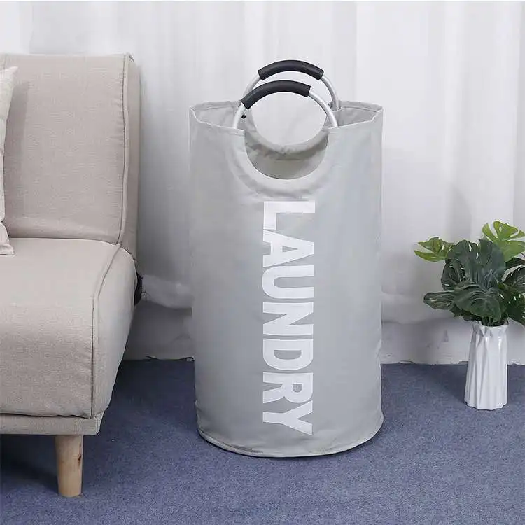 Eco Friendly Custom Round Shape Collapsible Folding Tote Laundry Basket Bag Clothes Storage Hamper with Drawstring