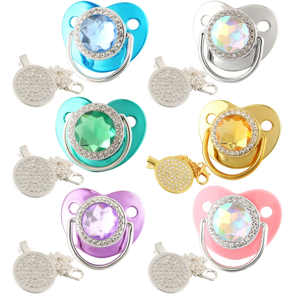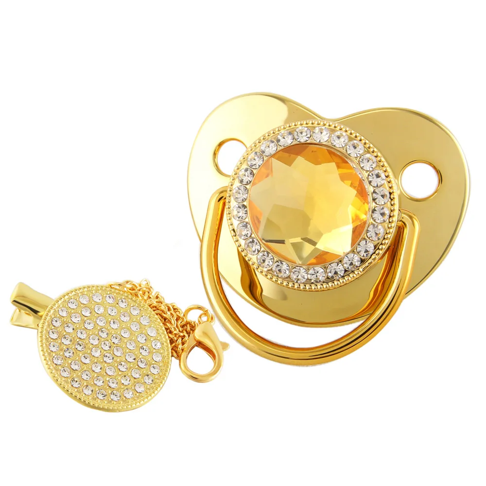 Baby Pacifier Clip Gold Bling Luxury Pacifier Chain Bpa Free Infant Nipple Baby Dummy Pacifier Chain Baby Shower Gift