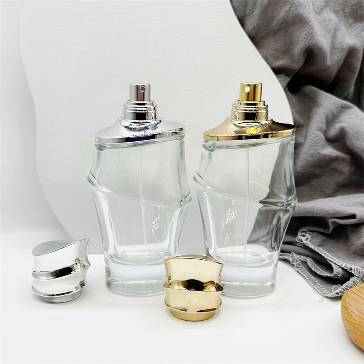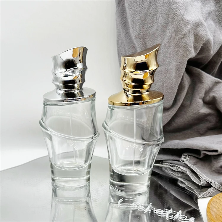 100ml Customized logo special shape metal cap spray glass perfume bottles