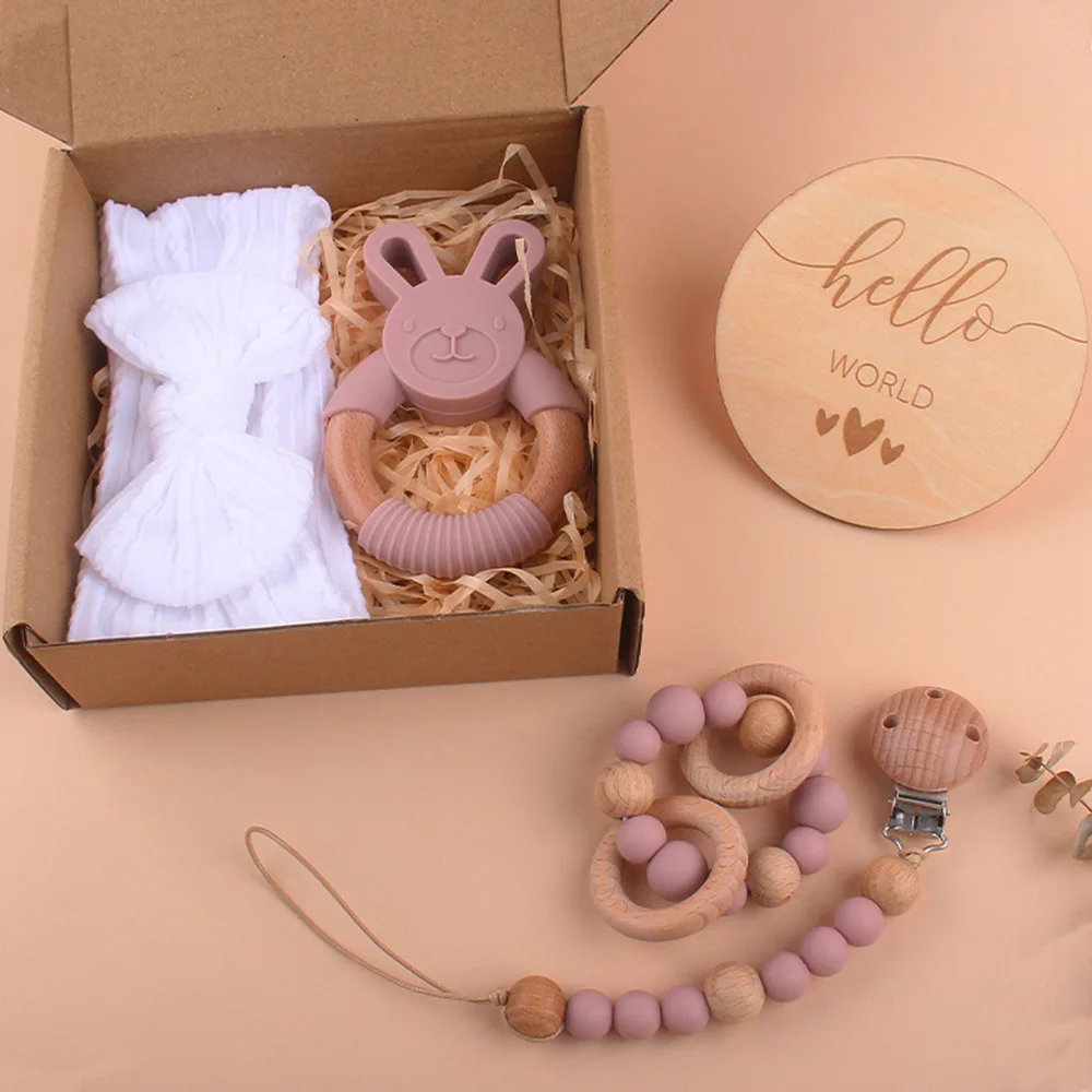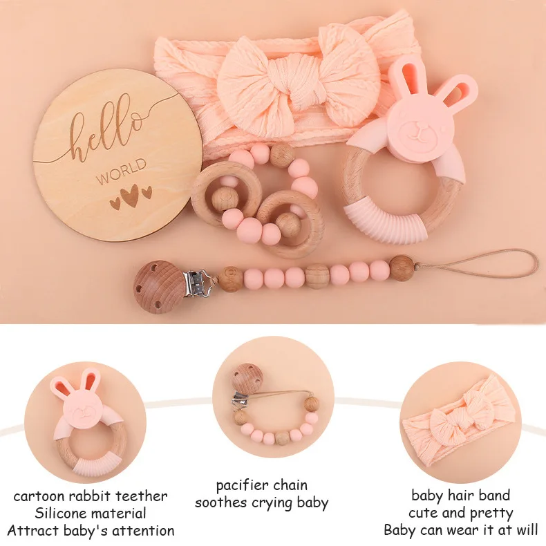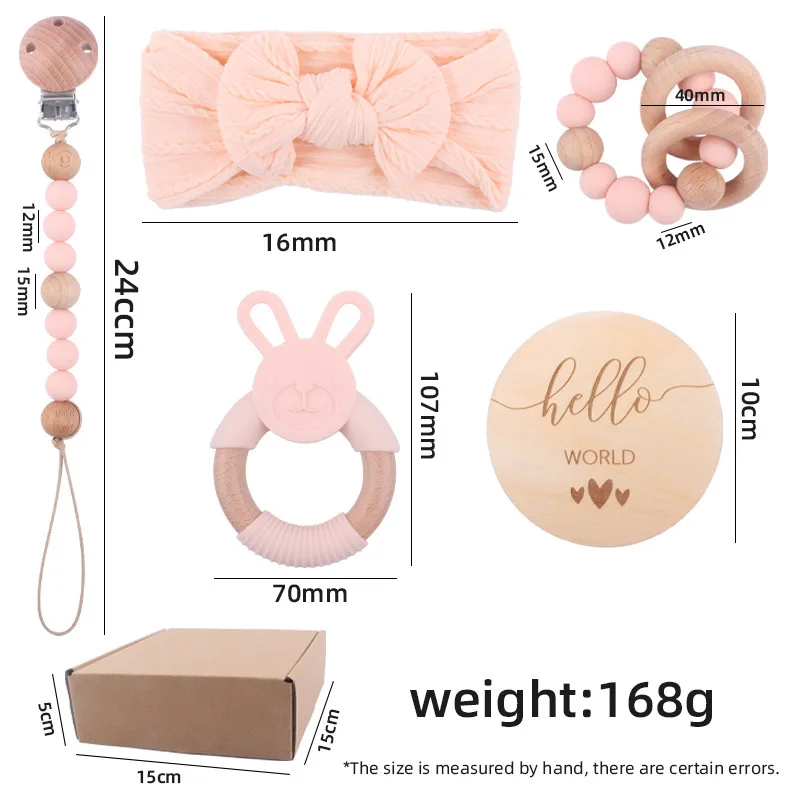 Baby beech silicone hand rattle cotton headband small name brand bracelet pacifier chain five-piece set