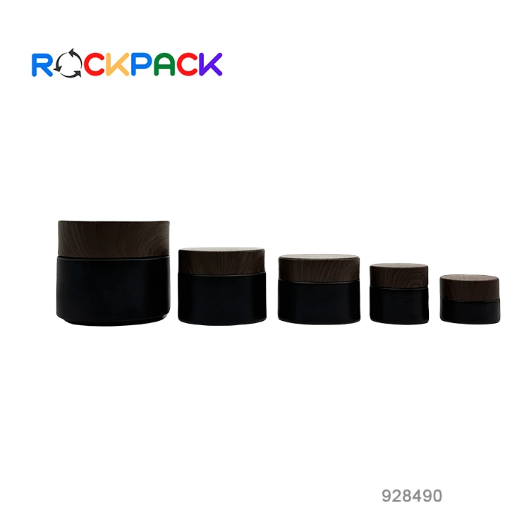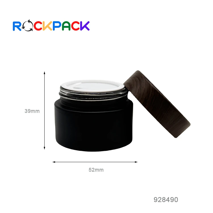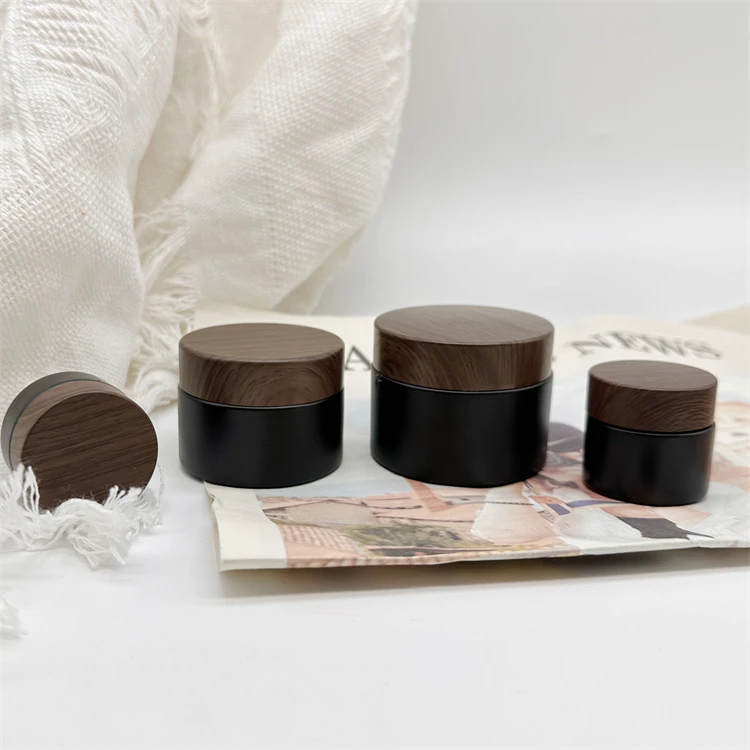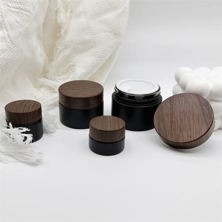 10g 30g 50g matte black glass jar with wood grain plastic cap