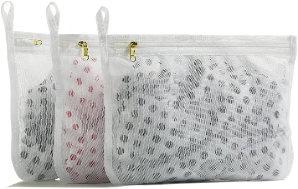 3 Pack Delicates Laundry Mesh Wash Bag UpgradeableYKK Zipper With Hanger Loops