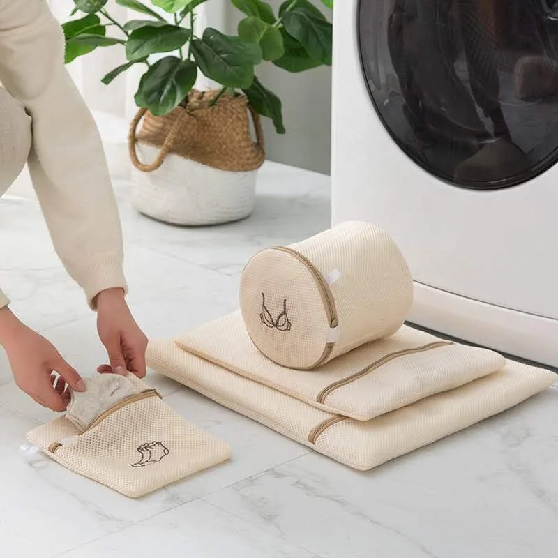 Eco Friendly Durable Water Soluble Wash Bags Bra Clothes Protector Recyclable Washing Thickened Polyester Mesh Laundry Bag