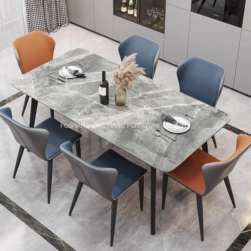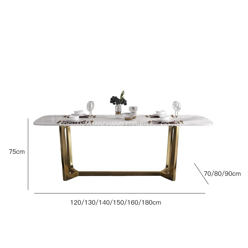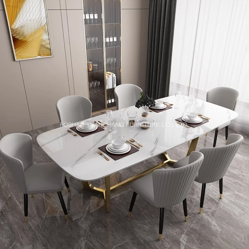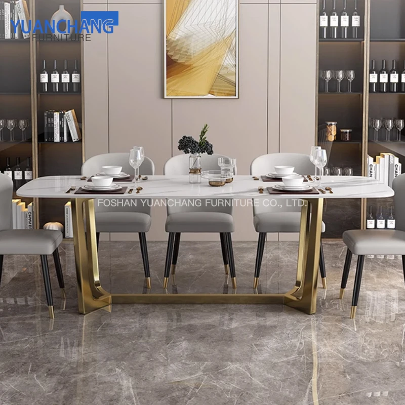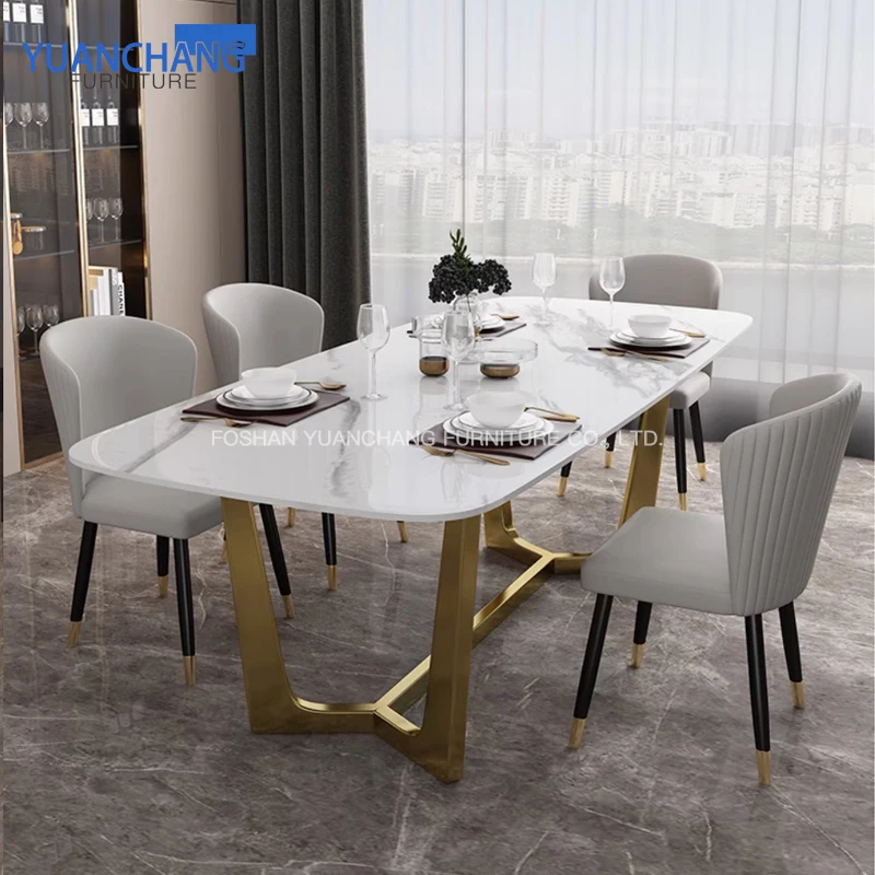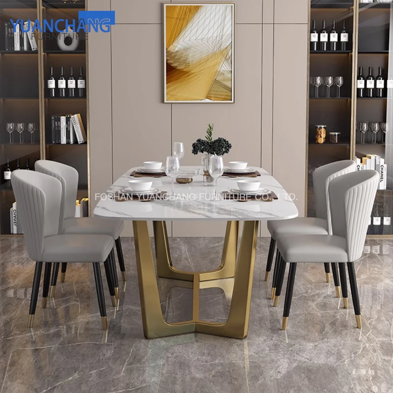 YuanChang chinese gold plated dining table room furniture luxury white marble dining table set for 6 seater