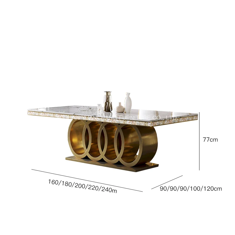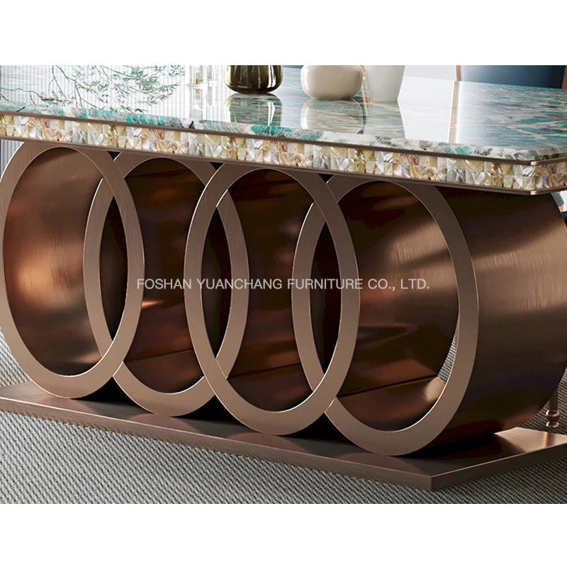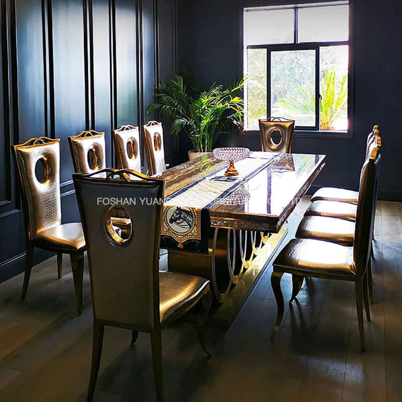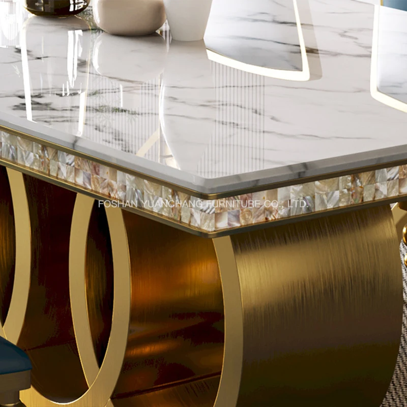 YuanChang high quality grey marble square dining table set 8 seater modern luxury golden stainless steel dining table