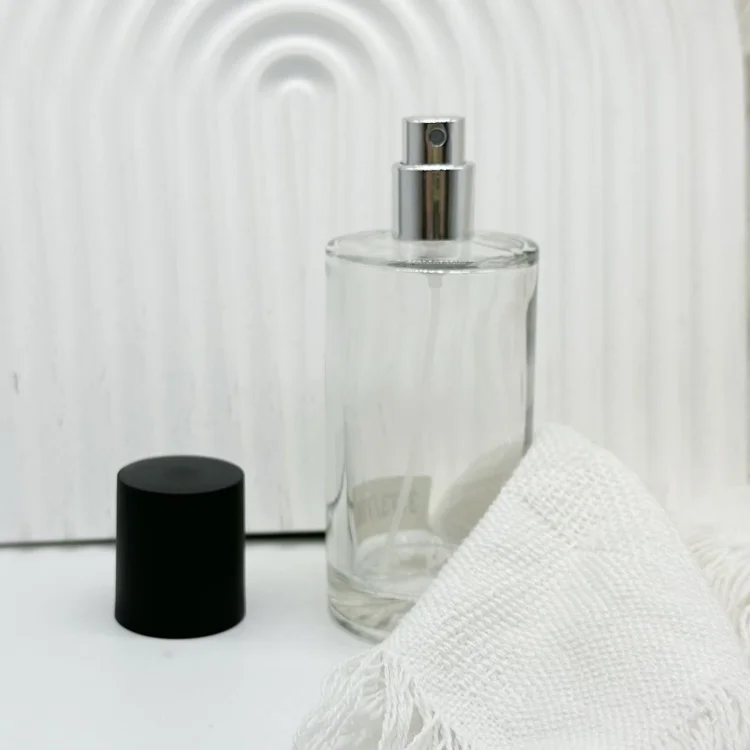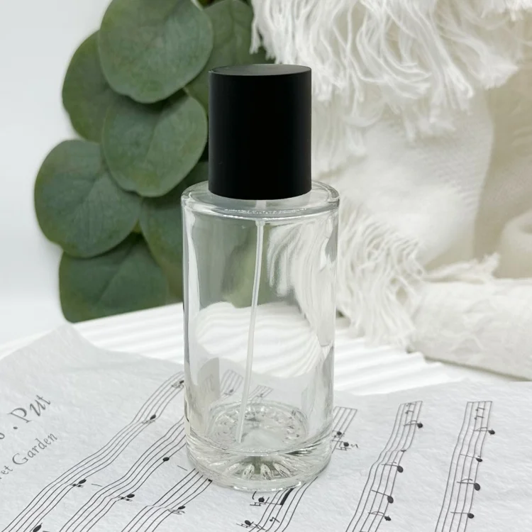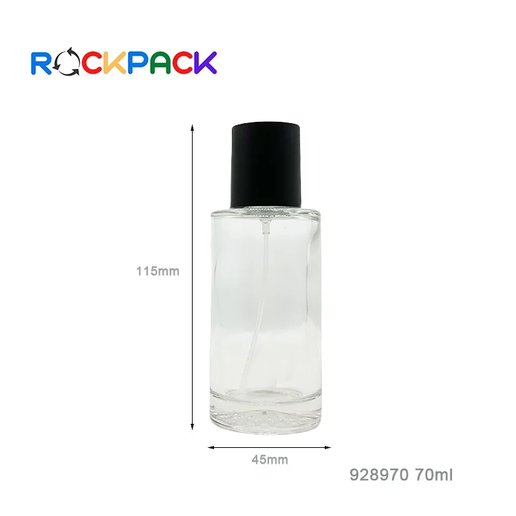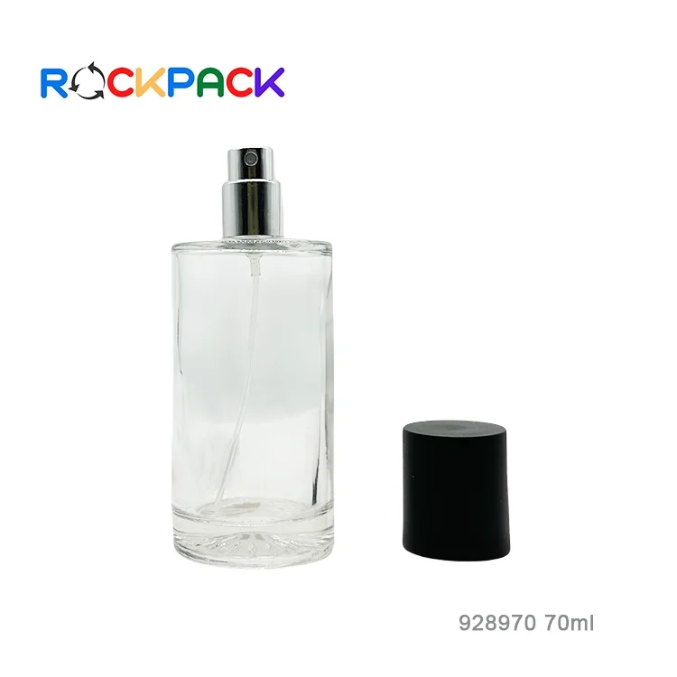 70ml Empty round shaped glass perfume spray bottles with black caps