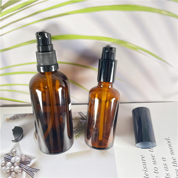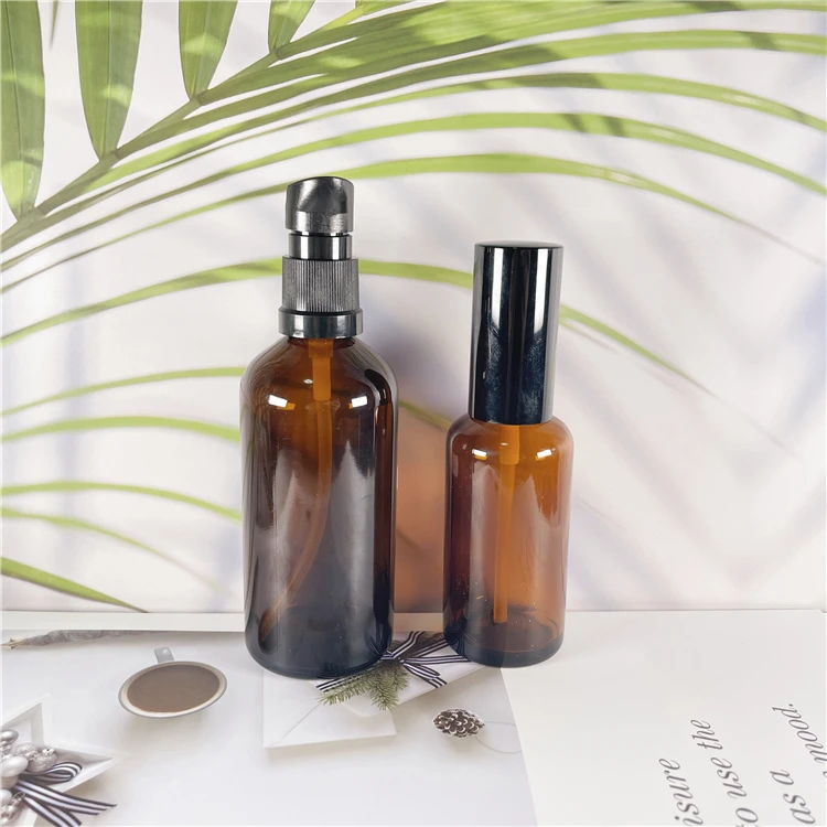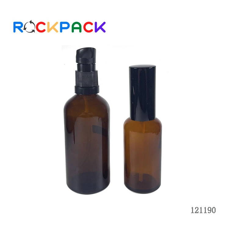 50ml 100ml Amber glass essential oil dropper bottles with lid