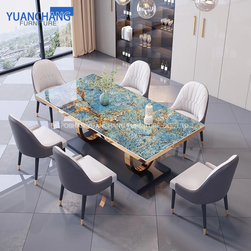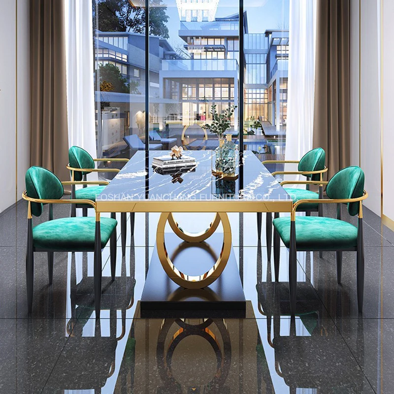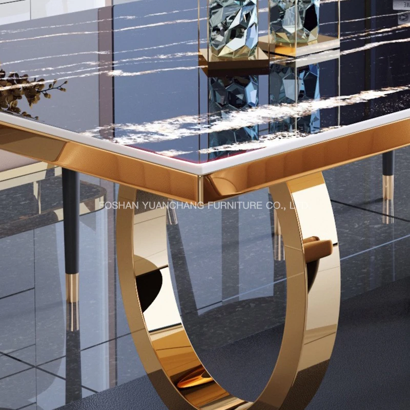 YuanChang golden antique stainless steel modern dining table luxury marble dining tables for dining room