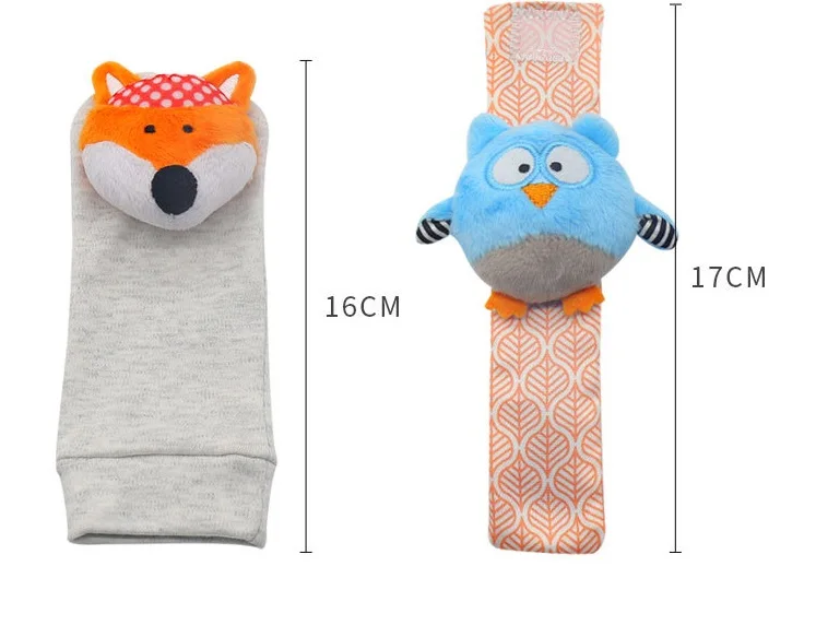 Baby rattle watch with socks cute animal pure cotton socks 0-1 years old plush baby toy single