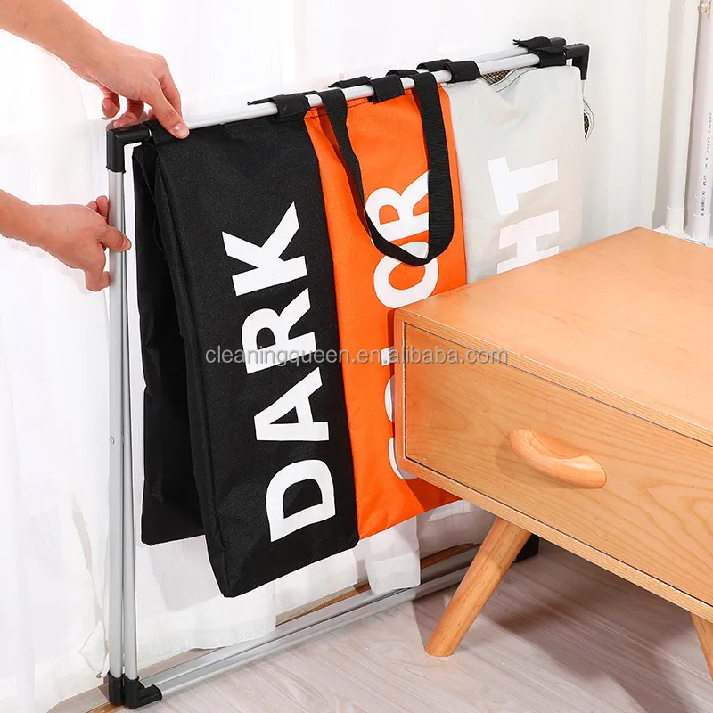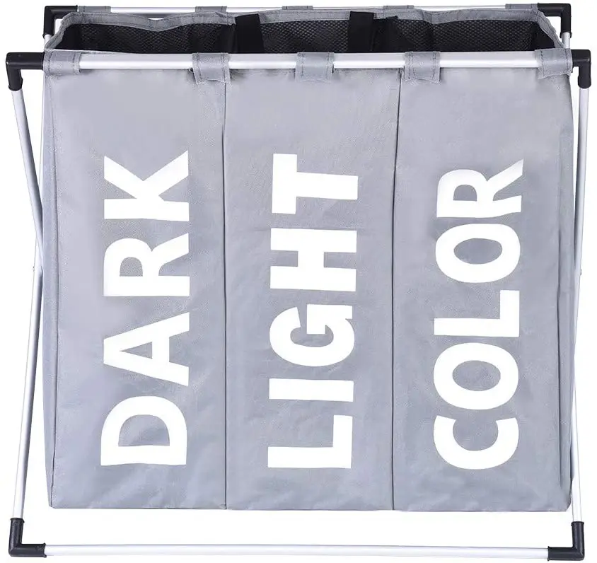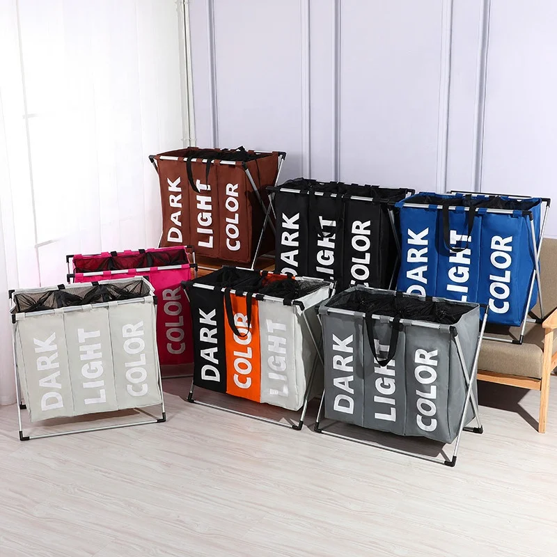 Factory hot sales laundry basket 3 compartments collapsible laundry basket foldable laundry storage basket foldable cloth bag