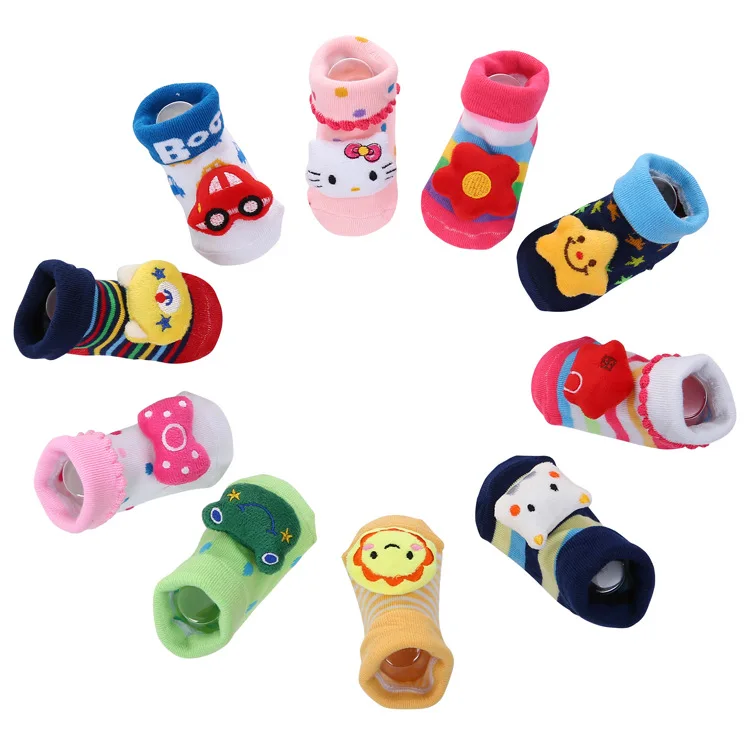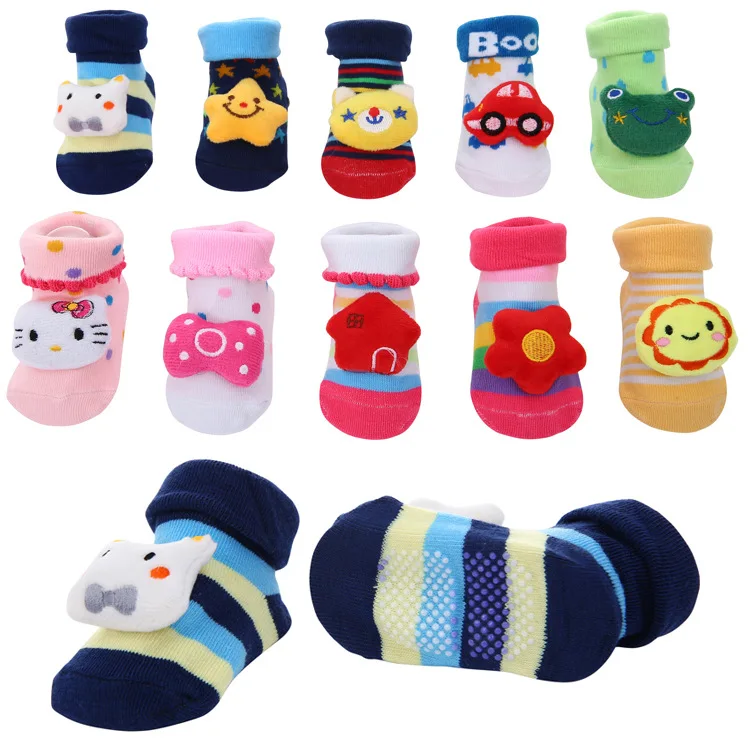 New cartoon non-slip three-dimensional doll baby socks striped dots cute children's socks