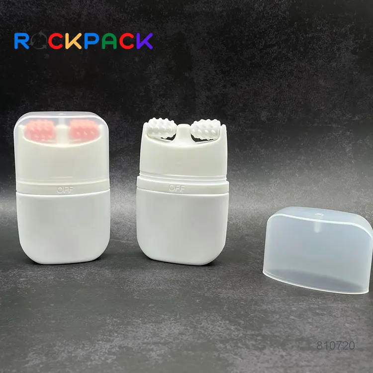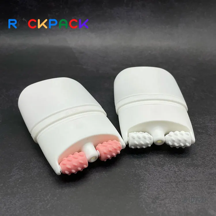 Hot sale 50ML White PE roller massage plastic cream bottle with double roller massage