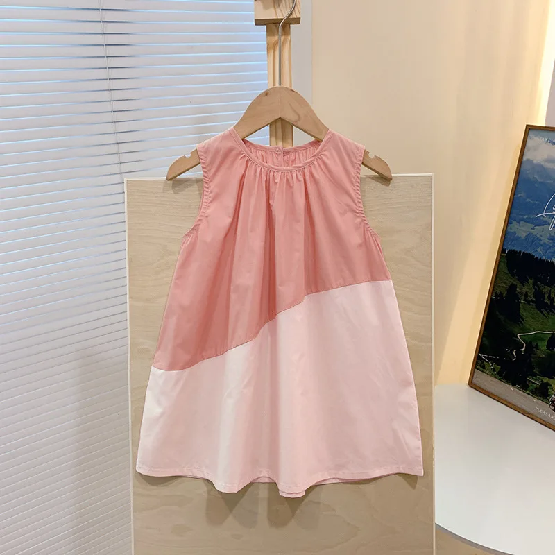 Children's dress sweet girl new color matching skirt sleeveless loose foreign style children's summer children's clothing