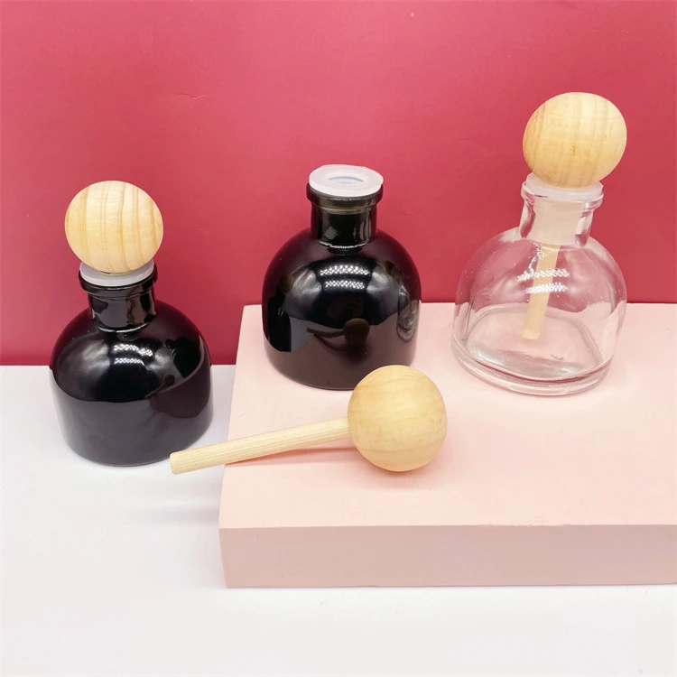 50ml Round glass aromatherapy reed diffuser perfume glass bottle with wooden stick cap