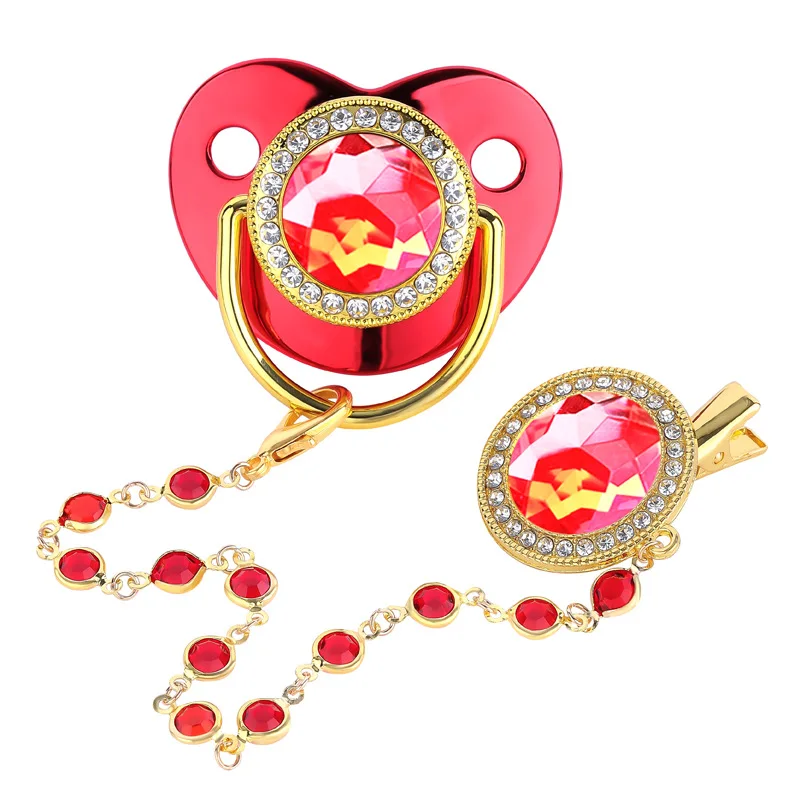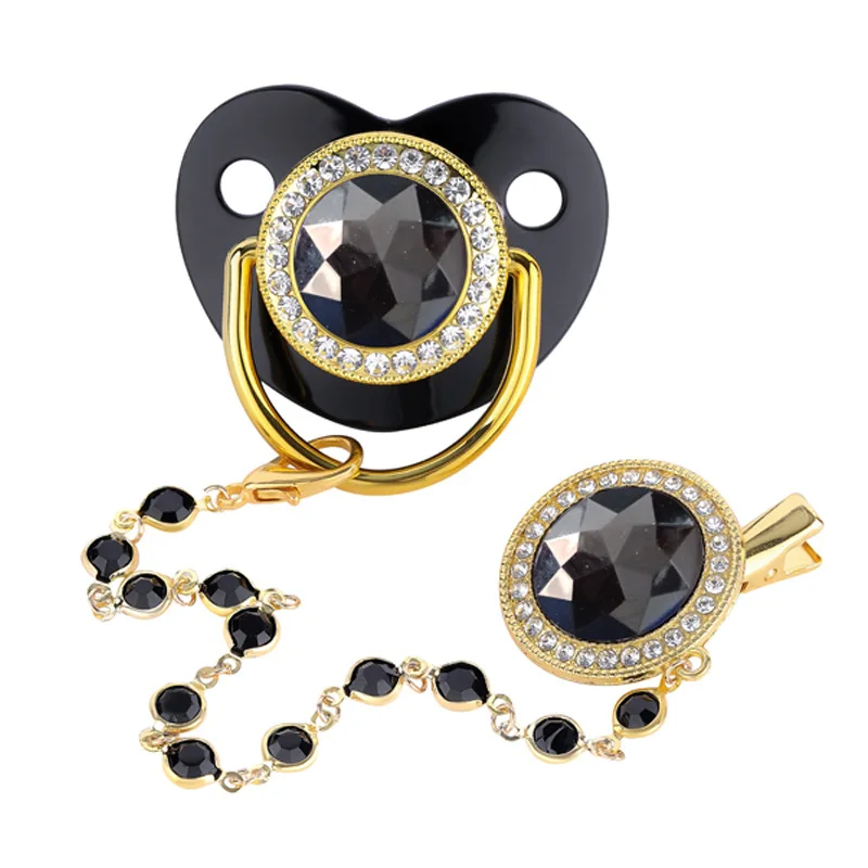 New Baby Diamond Soother Playing Mouth Baby Pacifier with Glass Bead Chain