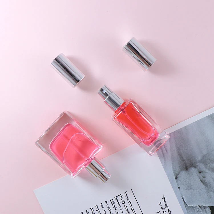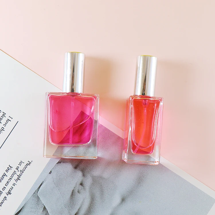 Empty Square Rectangle Shape 15ml Glass Perfume Bottle With Silver Cap