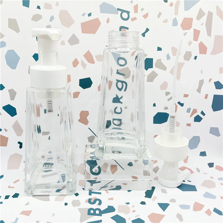350ml Transparent shampoo bottles emulsion cosmetic glass pump soap foaming bottles