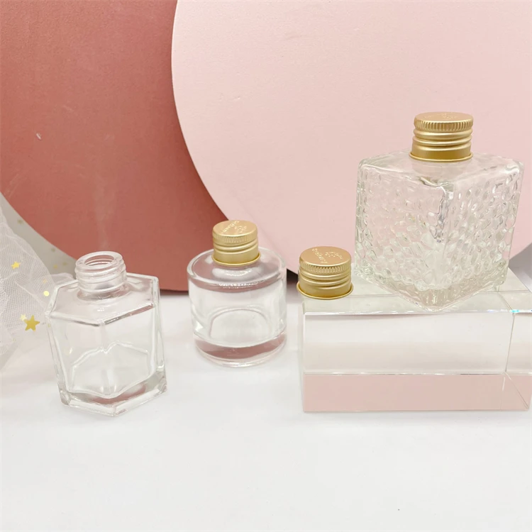 50ml 80ml Hexagon round shape food glass storage container honey jar with metal closure lid