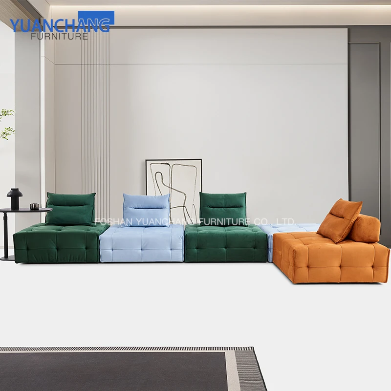 YUANCHANG Modular Velvet Fabric Small Space Home Living Room Furniture Sectional Vacuum Packing Compress Sofa Set for Apartment