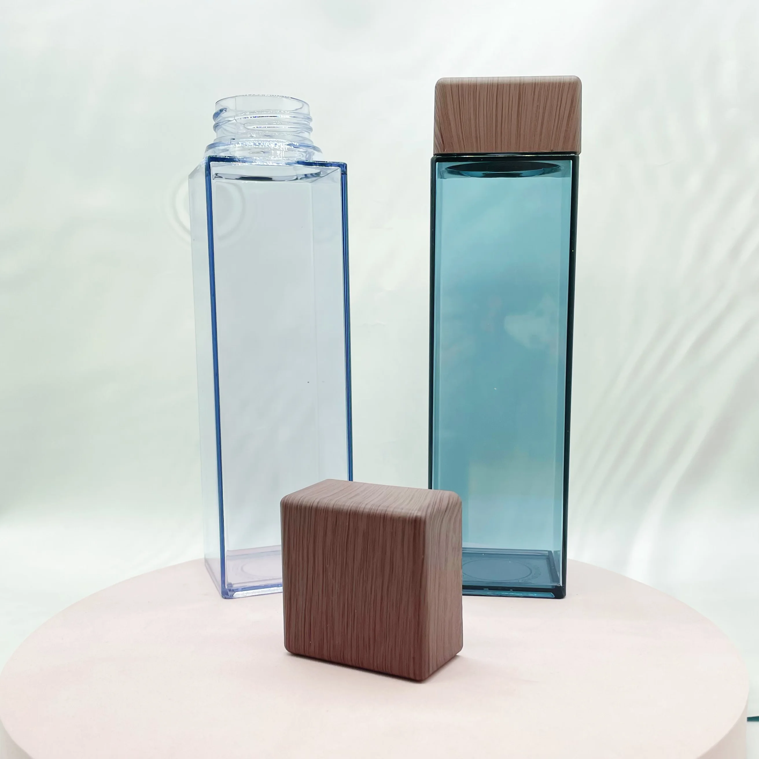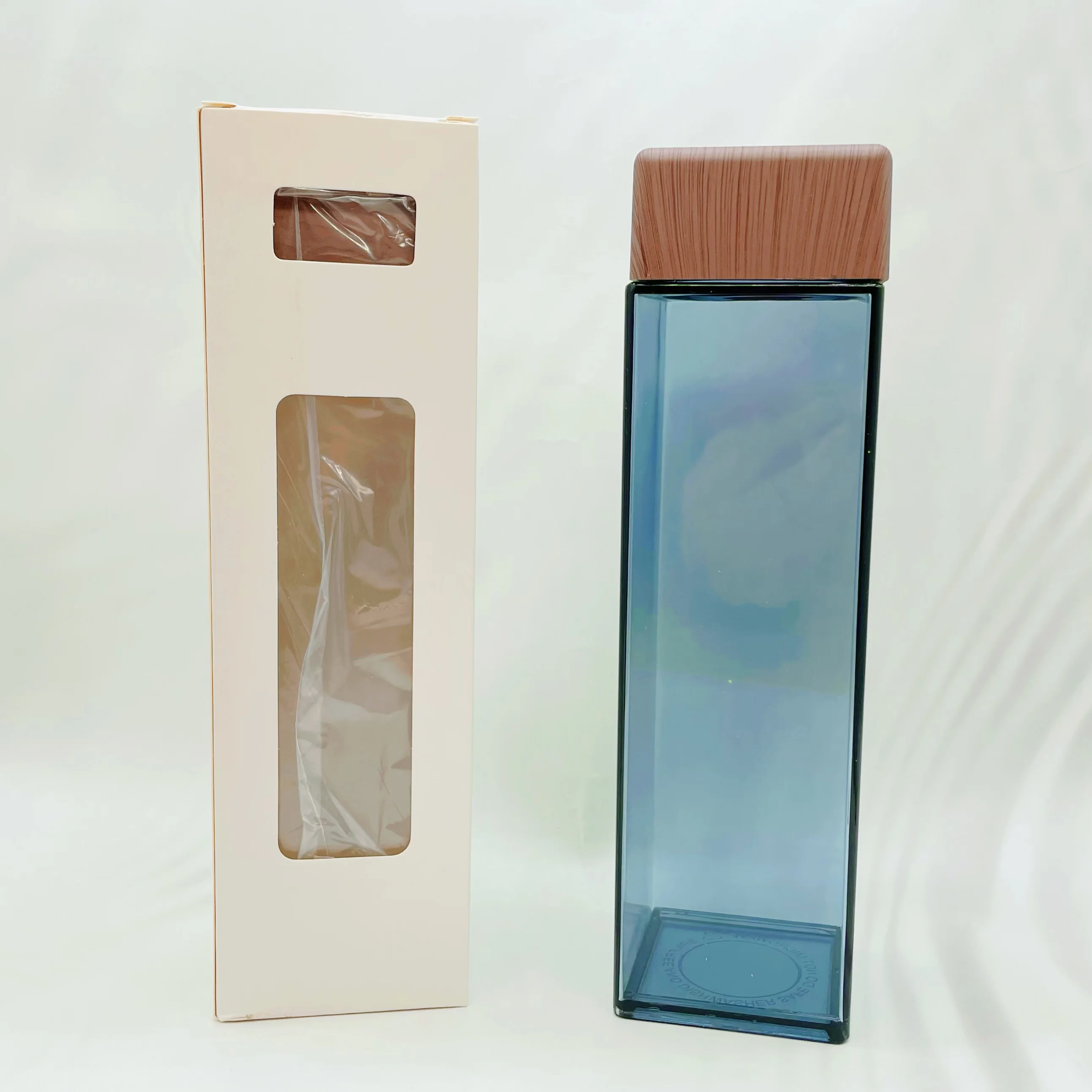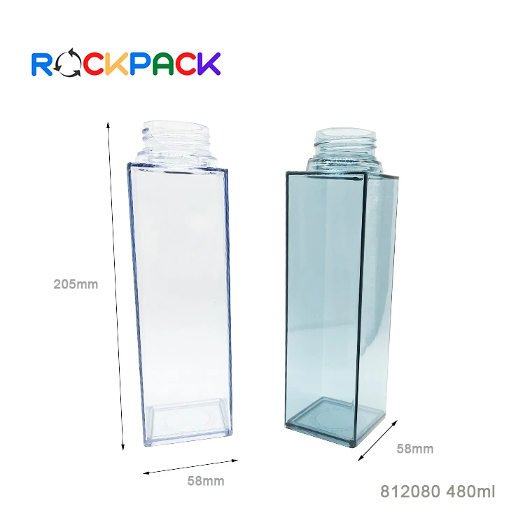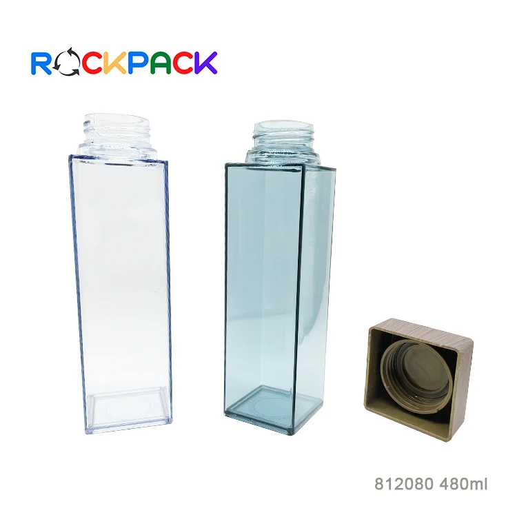 480ml Plastic Square Shape Water Drinking Bottle with bamboo lids