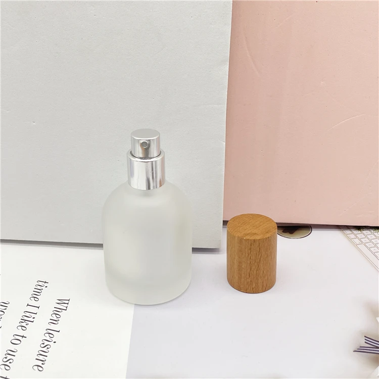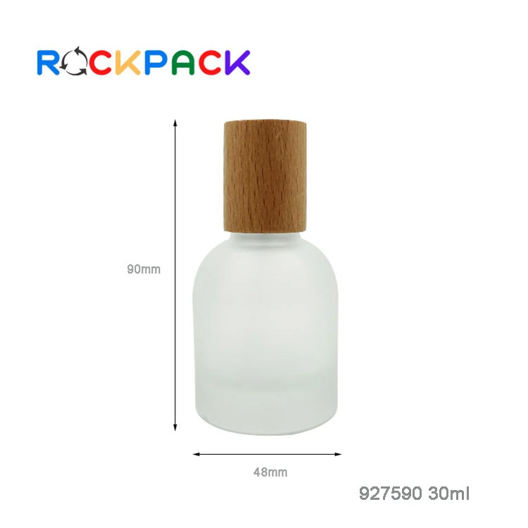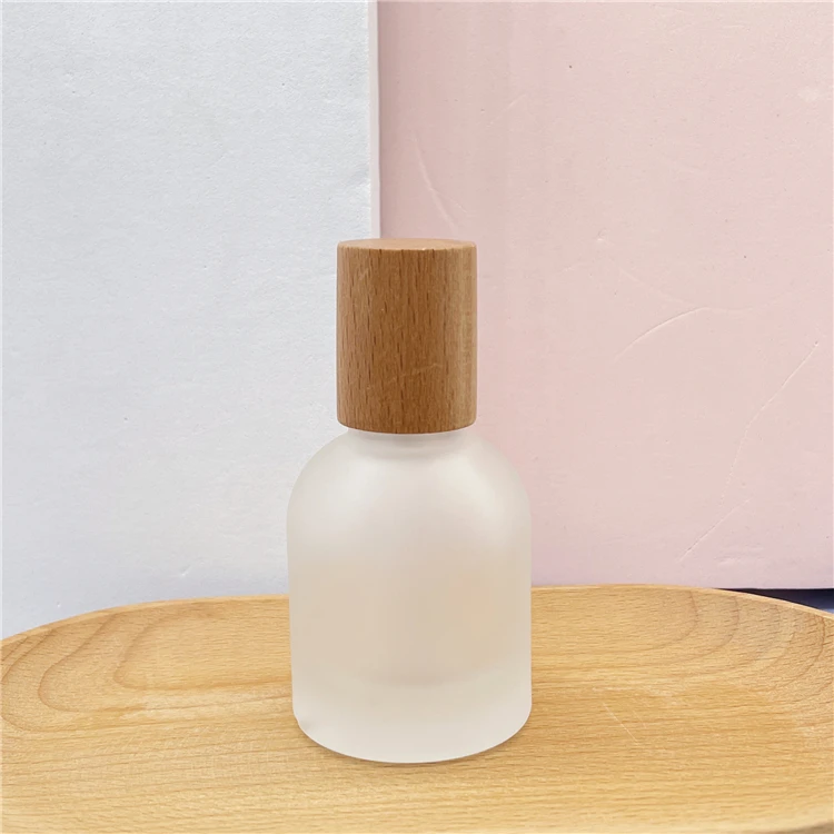 30ml Frosted glass round shape empty refill spray perfume bottles with wooden lids | |