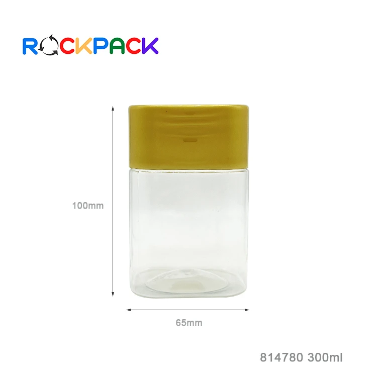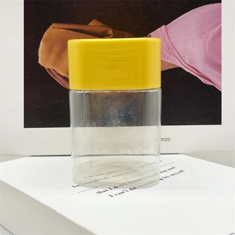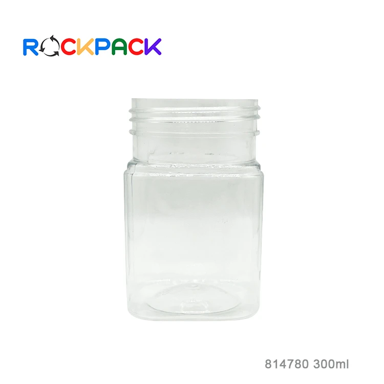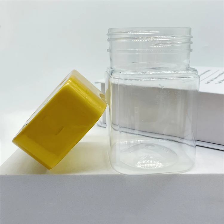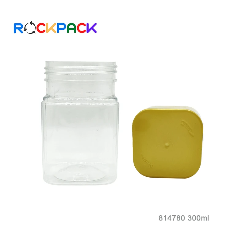 300ml Plastic square shape candy food sugar storage jar packaging