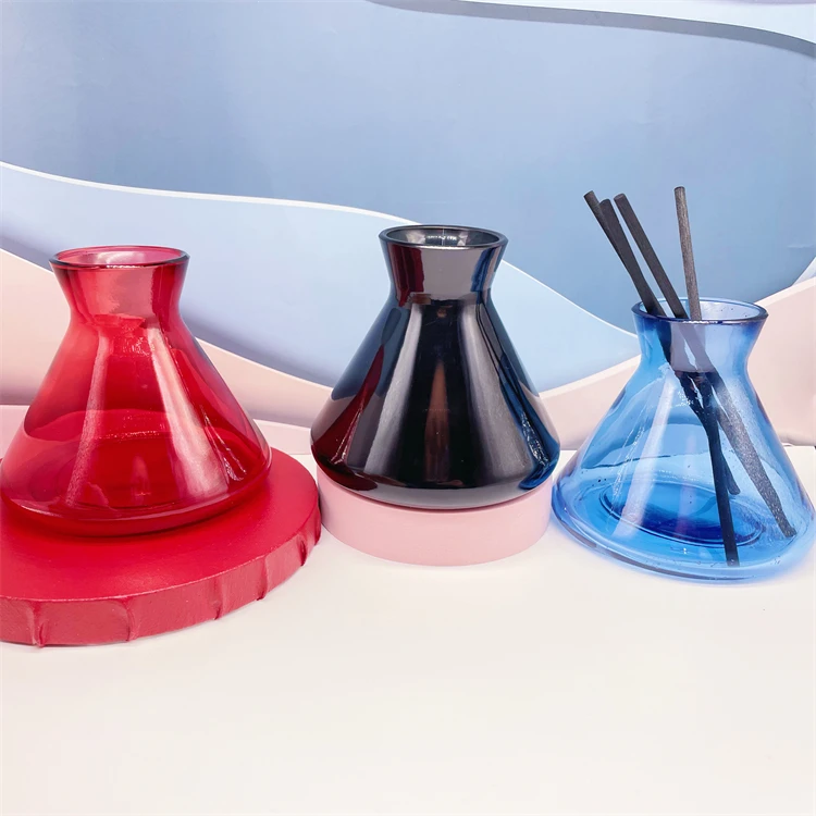 200ml Conical horn flameless colorful reed diffuser glass stick aromatherapy bottle