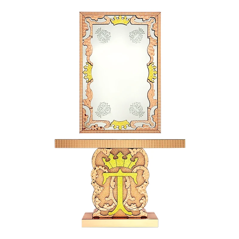 YuanChang custom stainless steel console table living room antique mirrored silver console table with mirror
