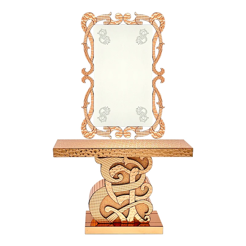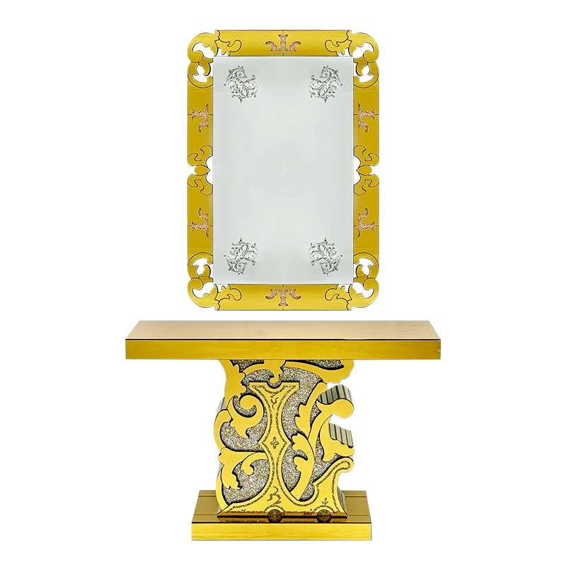 YuanChang modern luxury diamond console tables living room furniture antique gold glass console tables with mirror
