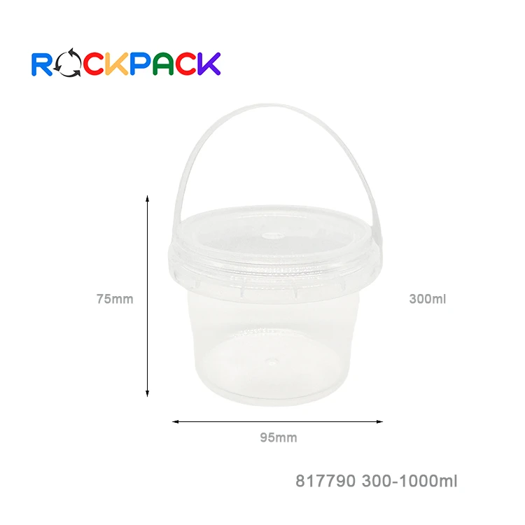300ml 500ml 750ml 1000ml Plastic Drink Wholesale Fresh Takeaway Fruits Container Buckets Clear Bucket Cups