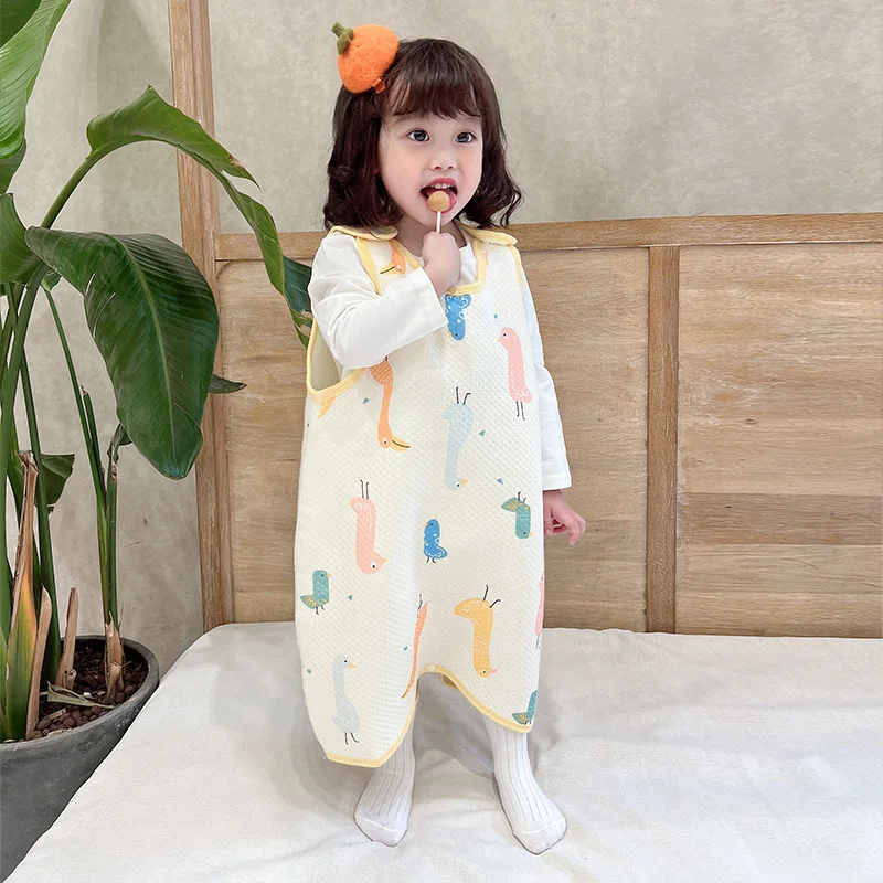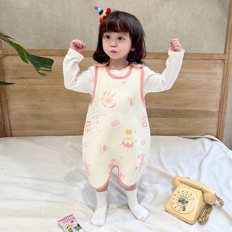 Children's sleeping bag thickened quilted baby vest type anti-kick quilt baby one-piece pajamas for big children sleeveless