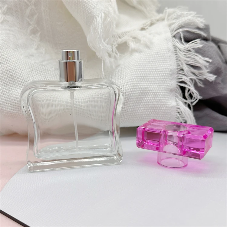 50ml Empty special shape Glass Spray refillable perfume spray bottle with plastic cap