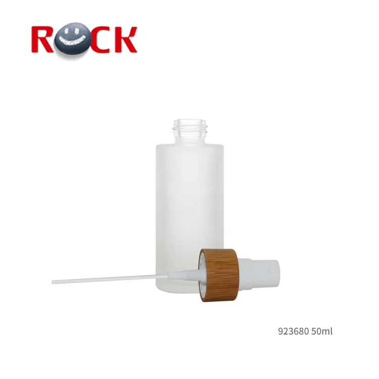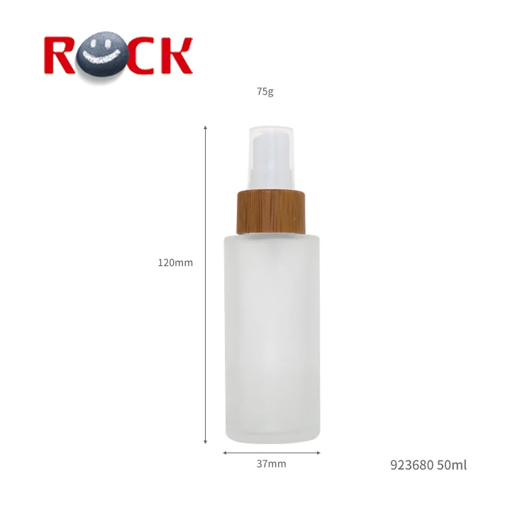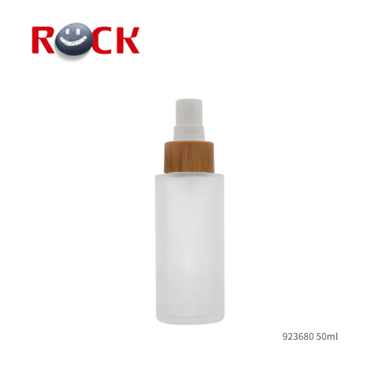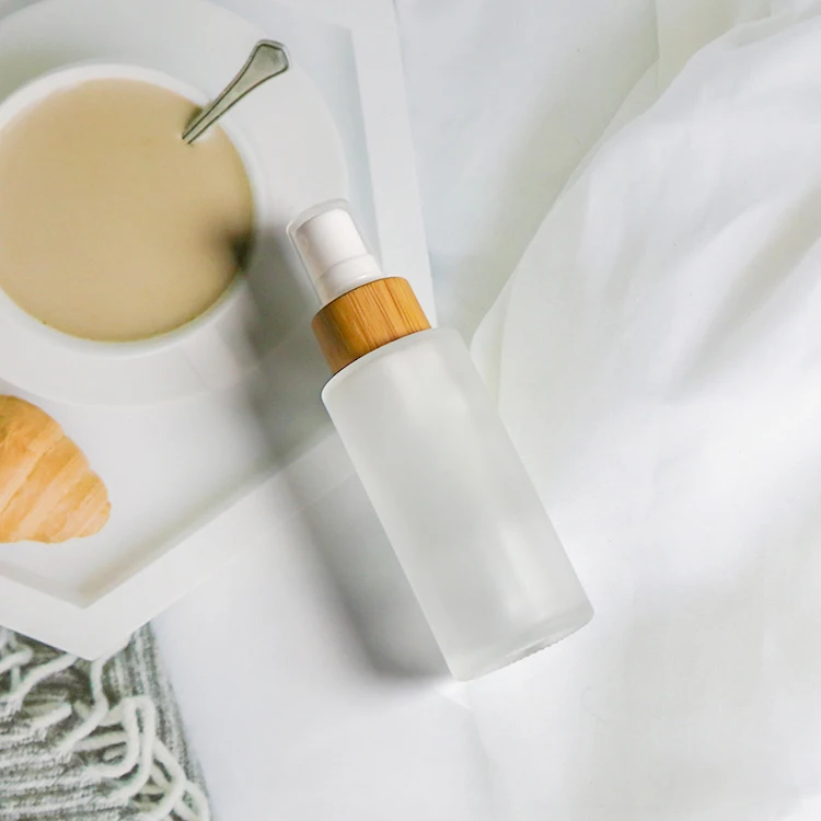 Hot sale custom design logo Clear frosted spray Glass Bottle with Bamboo cap pump