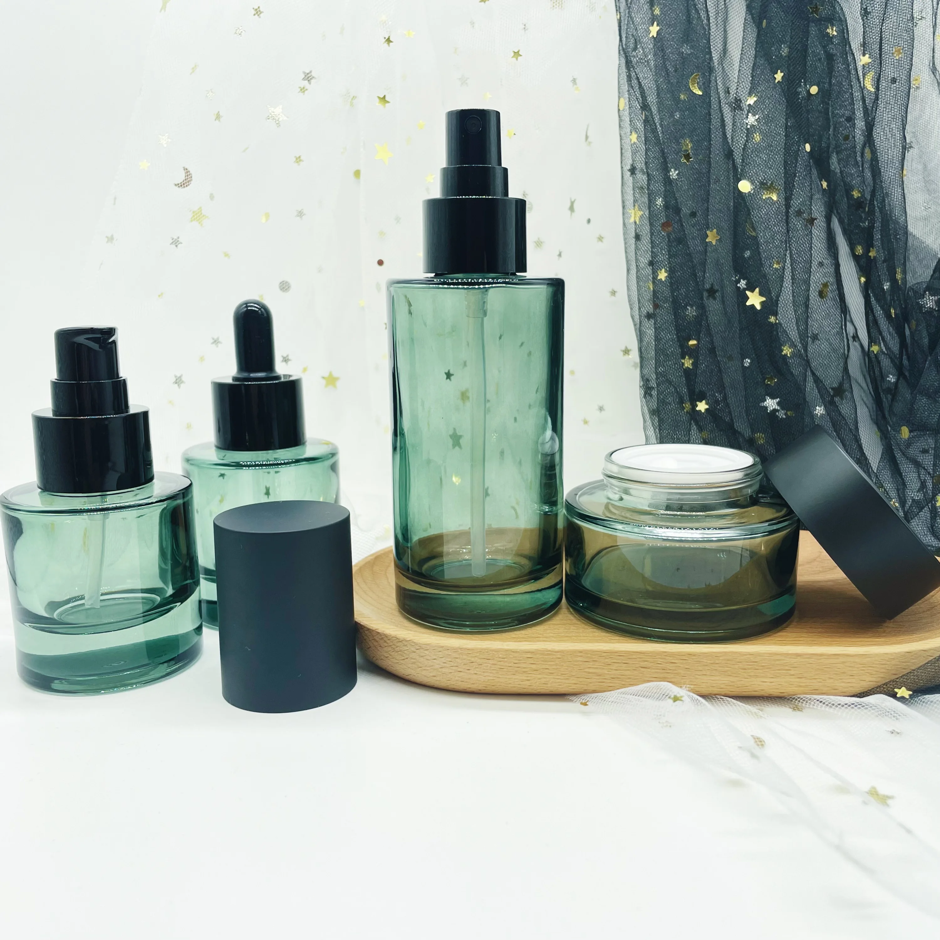 30ml 40ml 100ml Skin care blue-green color cosmetic lotion pump foundation glass bottles