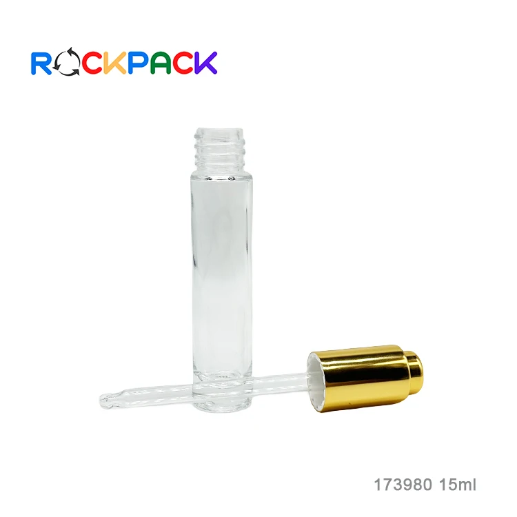 Custom design 15ml size glass cosmetic packaging bottle with glass dropper