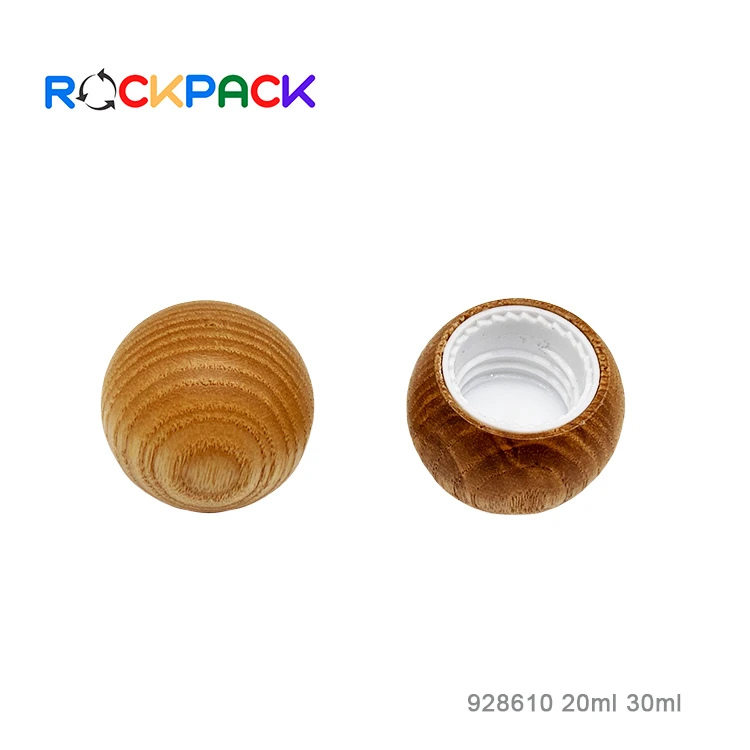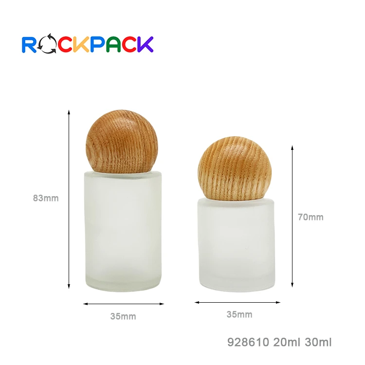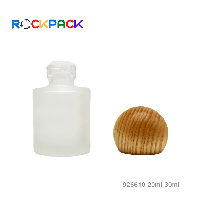 20ml 30ml Flat shoulder cosmetic frosted essential oil glass bottles with ball shape bamboo screw cap