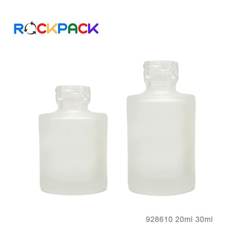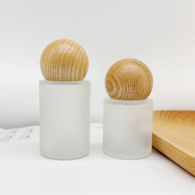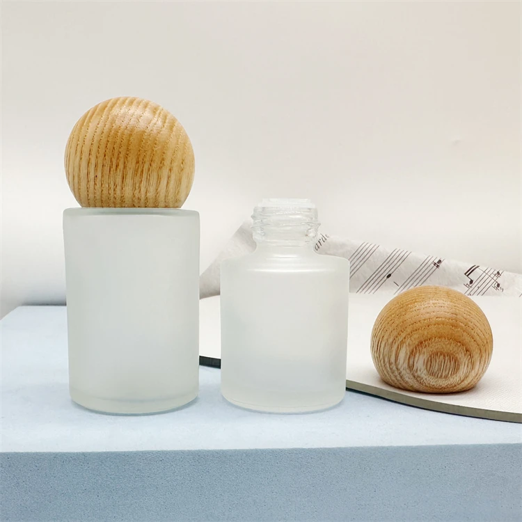 Hot sale 20ml 30ml Flat shoulder cosmetic frosted toner glass bottles with ball shape bamboo cap