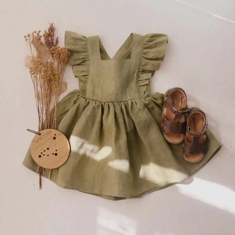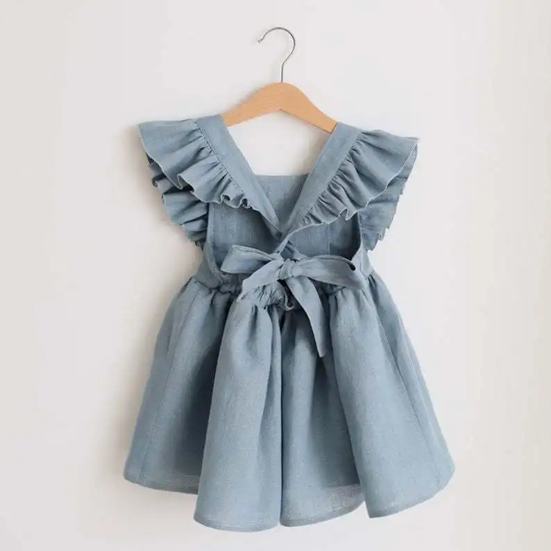 Toddler Girl Casual Summer Dress Girl Princess Dresses Linen cotton Halter Flutter Sleeve Baby girl dress