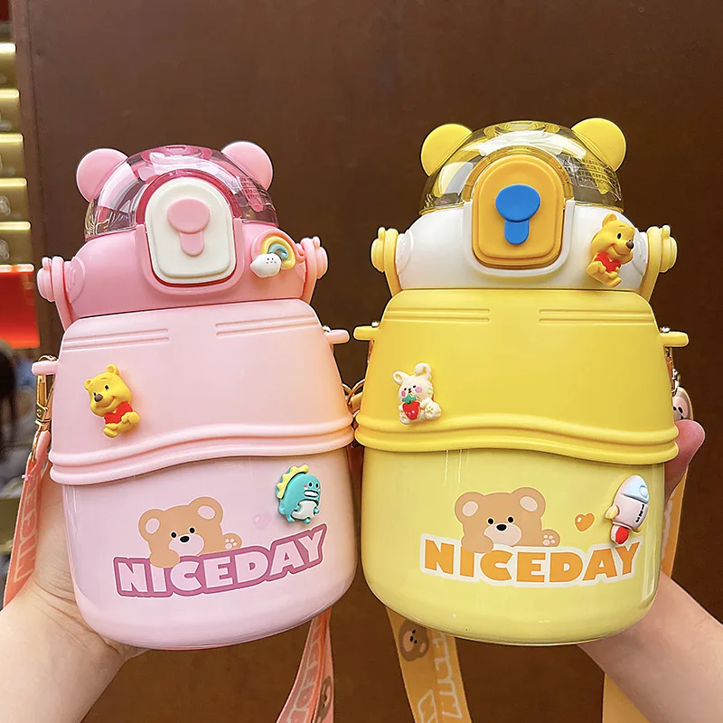 High Beauty Cartoon Big Belly Cup Large Capacity Cross Body Portable Sports Water Cup